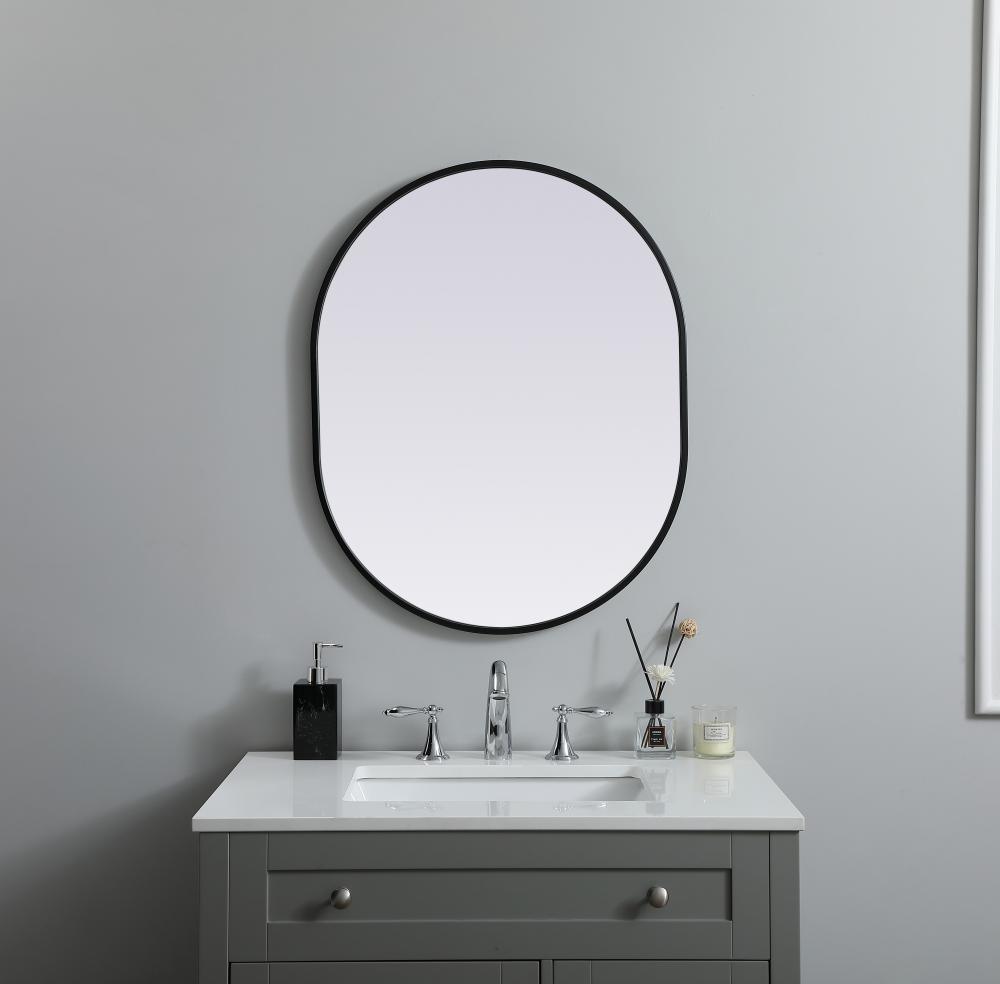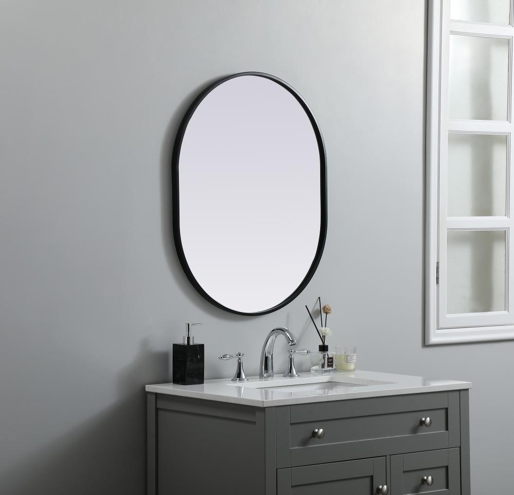 Instantly open up any space in your home with this minimalist wall-mounted mirror. Crafted of metal, this mirror strikes a pill-shaped silhouette. Its slender, clean-lined frame sports a classic finish, while the glass mirror within features a flat, for a brilliant reflection, letting the light bounce off to expand your space. Designed in a pill shape, this metal-frame mirror showcases in the three available satin finishes in black, brass, or silver. Mount this work of art in any room of your choice for added visual impact.
