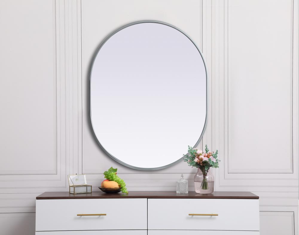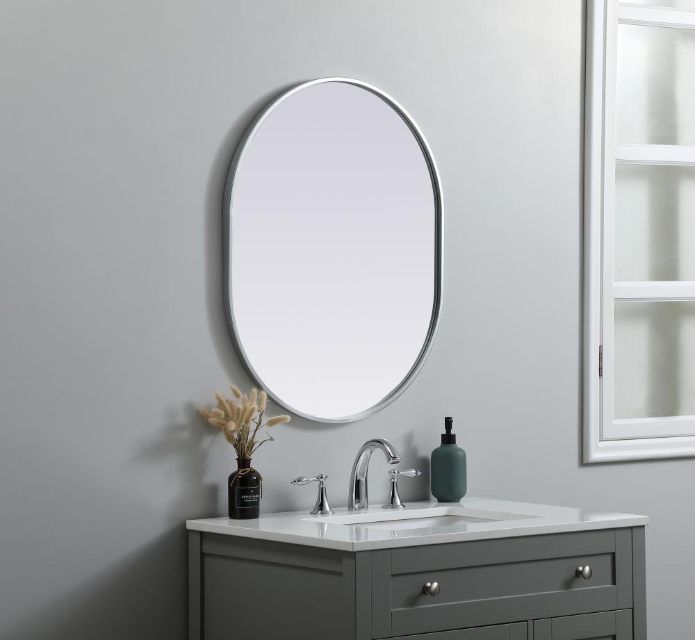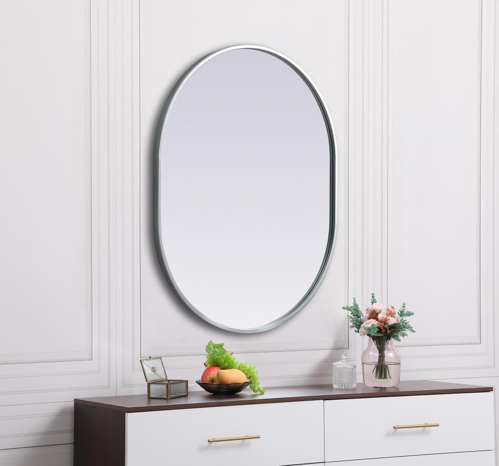 Metal Frame Oval Mirror 24x30 Inch in Silver