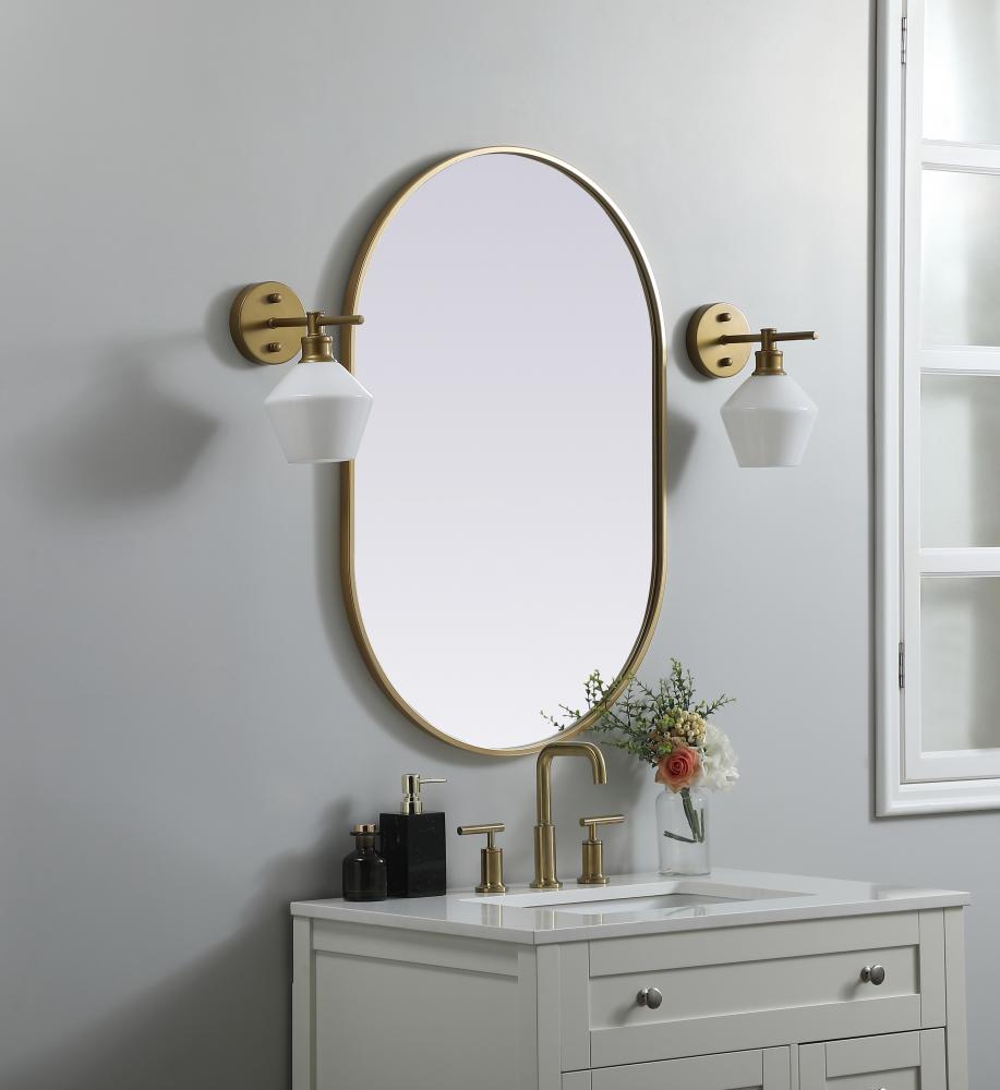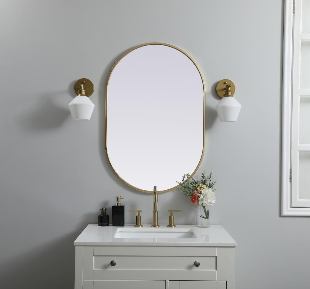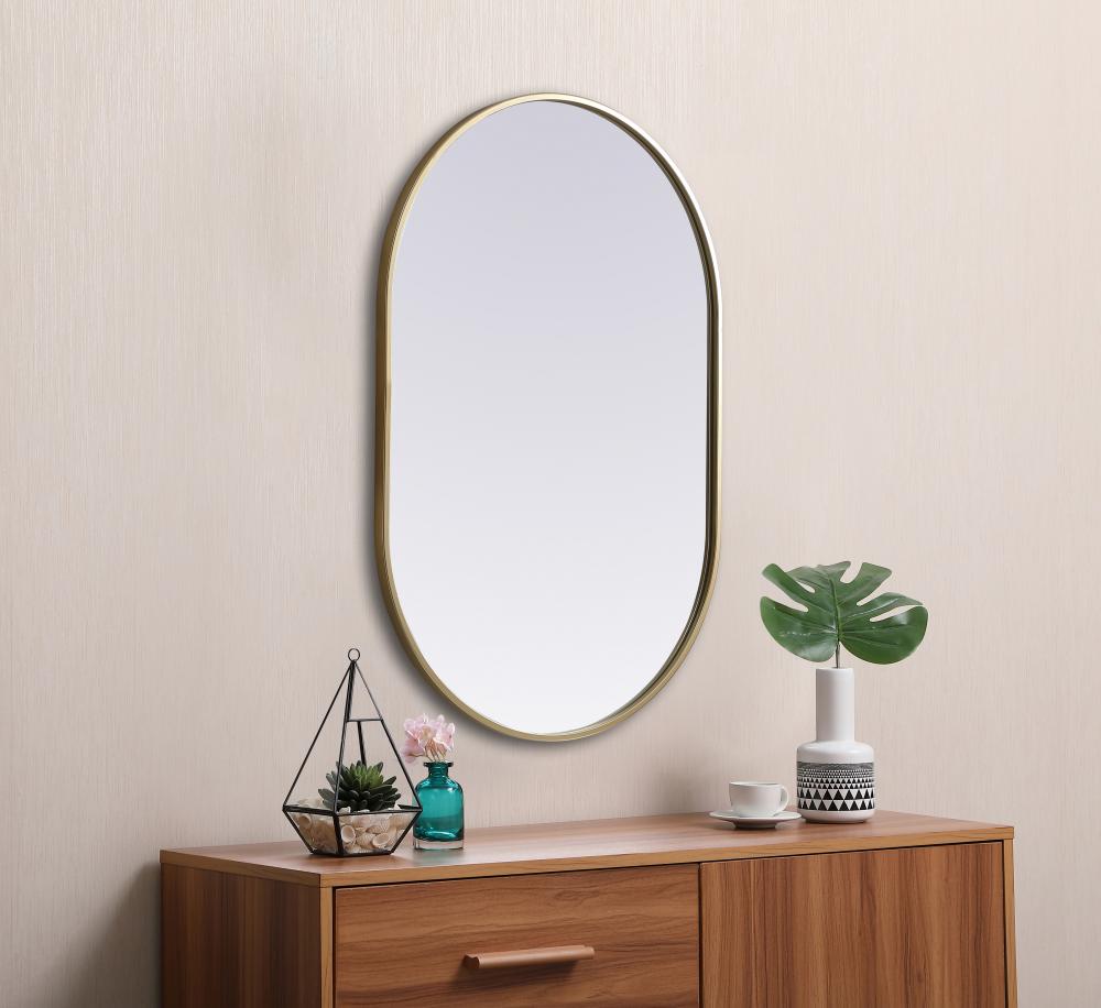 Instantly open up any space in your home with this minimalist wall-mounted mirror. Crafted of metal, this mirror strikes a pill-shaped silhouette. Its slender, clean-lined frame sports a classic finish, while the glass mirror within features a flat, for a brilliant reflection, letting the light bounce off to expand your space. Designed in a pill shape, this metal-frame mirror showcases in the three available satin finishes in black, brass, or silver. Mount this work of art in any room of your choice for added visual impact.