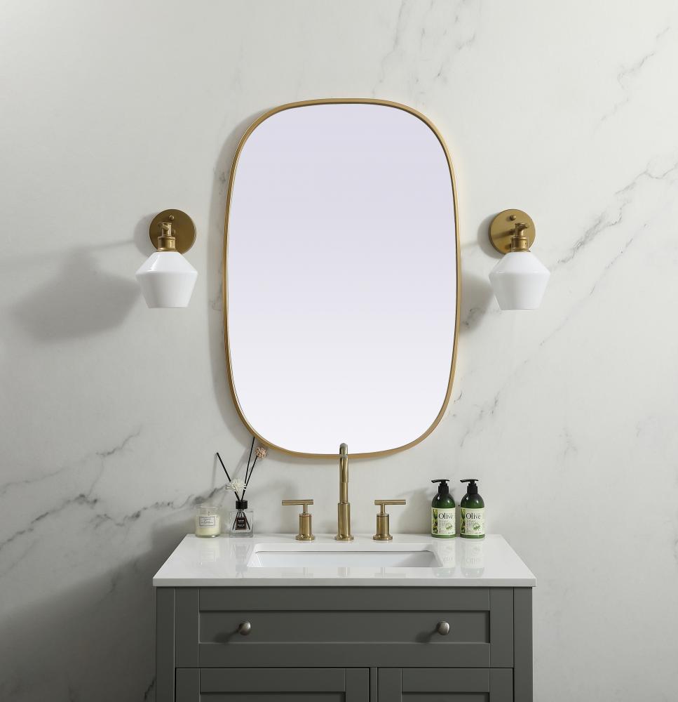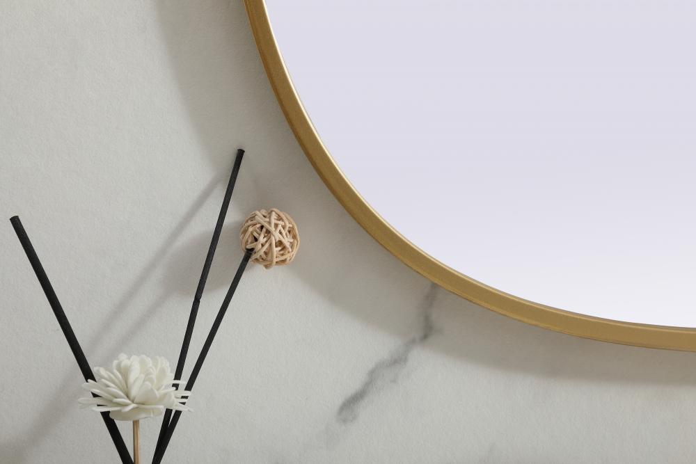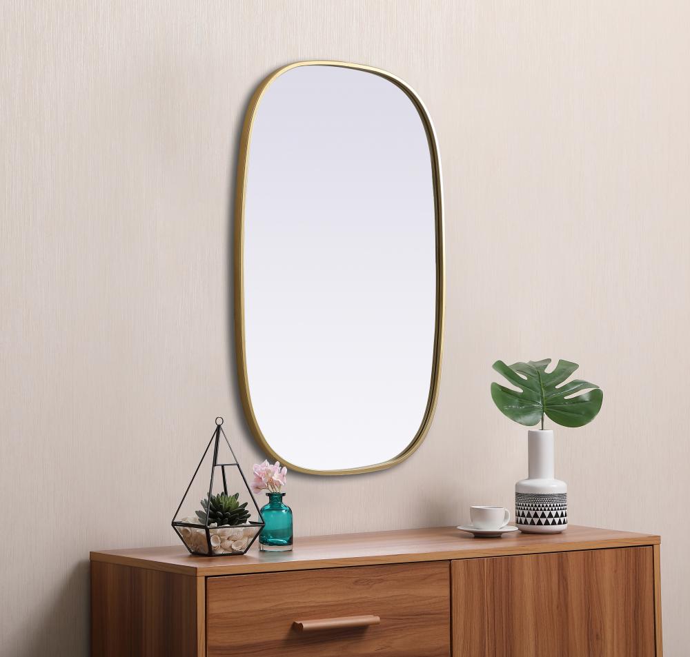 Crafted of metal, this mirror strikes a rounded corner silhouette. Instantly open up any space in your home with this minimalist wall-mounted mirror. Its slender, clean-lined frame sports a classic finish, while the glass mirror within features a flat, for a brilliant reflection, letting the light bounce off to expand your space. Designed in an oblong shape, this metal-frame mirror showcases in the three available satin finishes in black, brass, or silver. Mount this work of art in any room of your choice for added visual impact.
