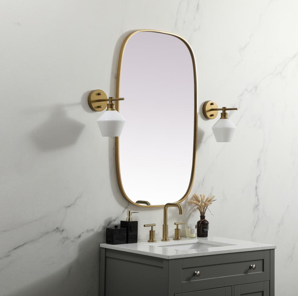 Crafted of metal, this mirror strikes a rounded corner silhouette. Instantly open up any space in your home with this minimalist wall-mounted mirror. Its slender, clean-lined frame sports a classic finish, while the glass mirror within features a flat, for a brilliant reflection, letting the light bounce off to expand your space. Designed in an oblong shape, this metal-frame mirror showcases in the three available satin finishes in black, brass, or silver. Mount this work of art in any room of your choice for added visual impact.