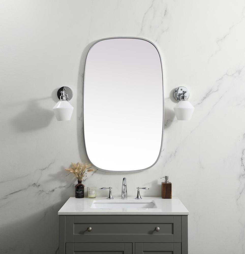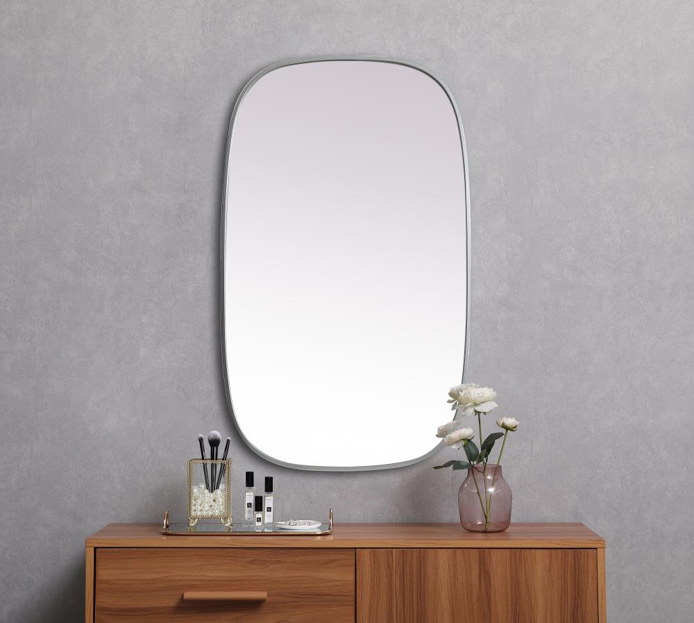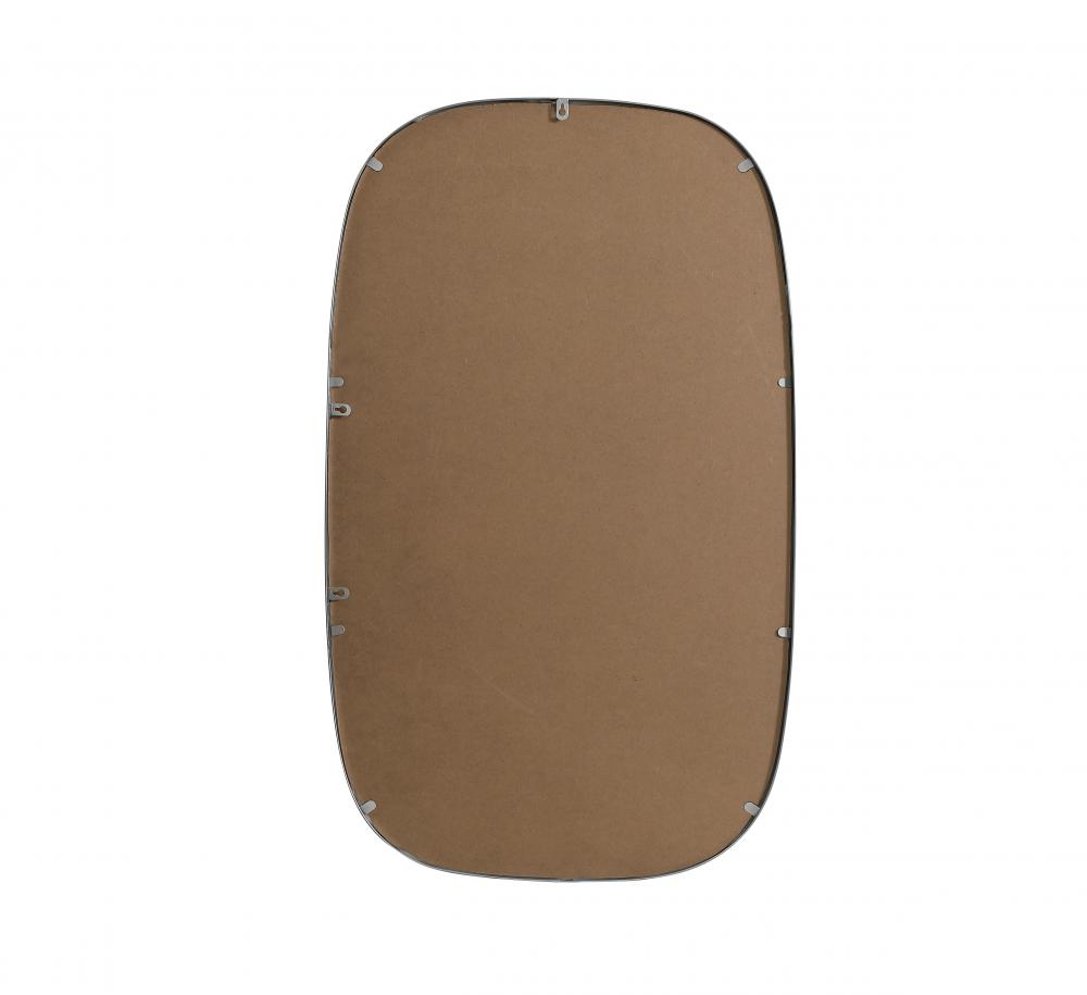 Crafted of metal, this mirror strikes a rounded corner silhouette. Instantly open up any space in your home with this minimalist wall-mounted mirror. Its slender, clean-lined frame sports a classic finish, while the glass mirror within features a flat, for a brilliant reflection, letting the light bounce off to expand your space. Designed in an oblong shape, this metal-frame mirror showcases in the three available satin finishes in black, brass, or silver. Mount this work of art in any room of your choice for added visual impact.