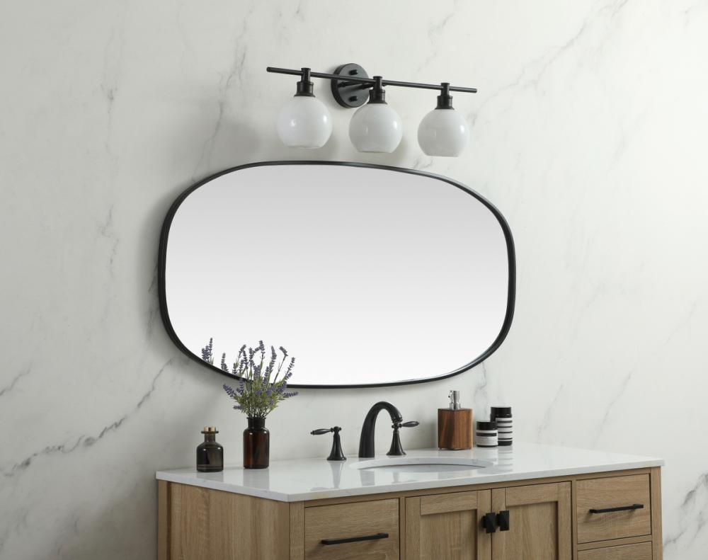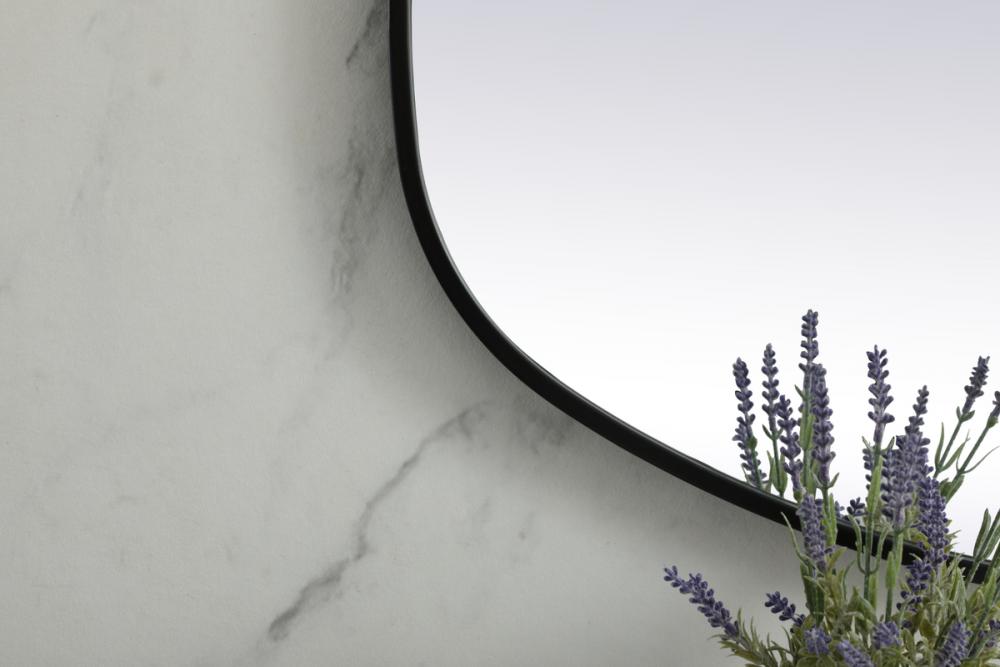 Crafted of metal, this mirror strikes a rounded corner silhouette. Instantly open up any space in your home with this minimalist wall-mounted mirror. Its slender, clean-lined frame sports a classic finish, while the glass mirror within features a flat, for a brilliant reflection, letting the light bounce off to expand your space. Designed in an oblong shape, this metal-frame mirror showcases in the three available satin finishes in black, brass, or silver. Mount this work of art in any room of your choice for added visual impact.