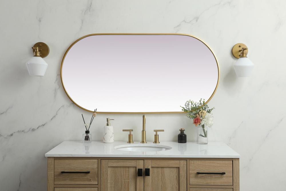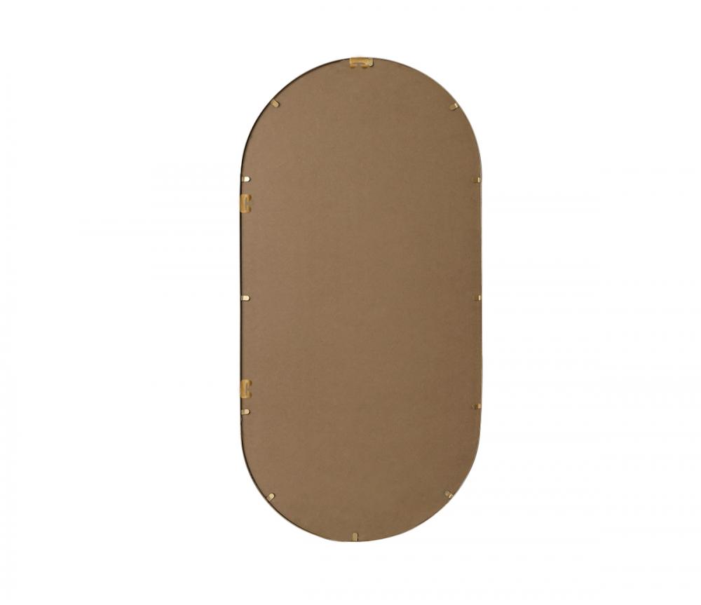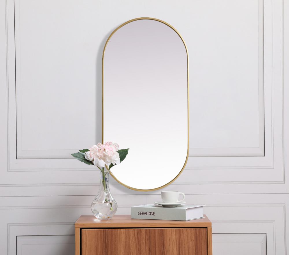 Instantly open up any space in your home with this minimalist wall-mounted mirror. Crafted of metal, this mirror strikes a pill-shaped silhouette. Its slender, clean-lined frame sports a classic finish, while the glass mirror within features a flat, for a brilliant reflection, letting the light bounce off to expand your space. Designed in a pill shape, this metal-frame mirror showcases in the three available satin finishes in black, brass, or silver. Mount this work of art in any room of your choice for added visual impact.