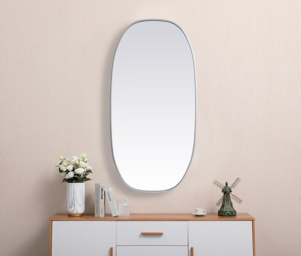 Metal Frame Oval Mirror 24x48 Inch in Silver