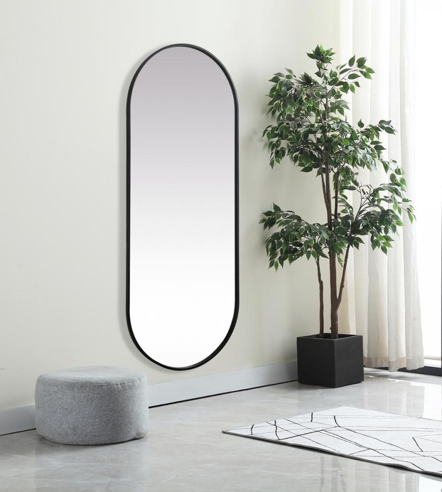Metal Frame Oval Mirror 24x60 Inch in Black