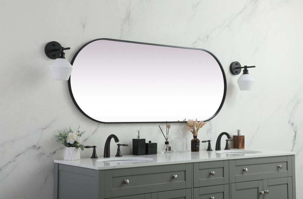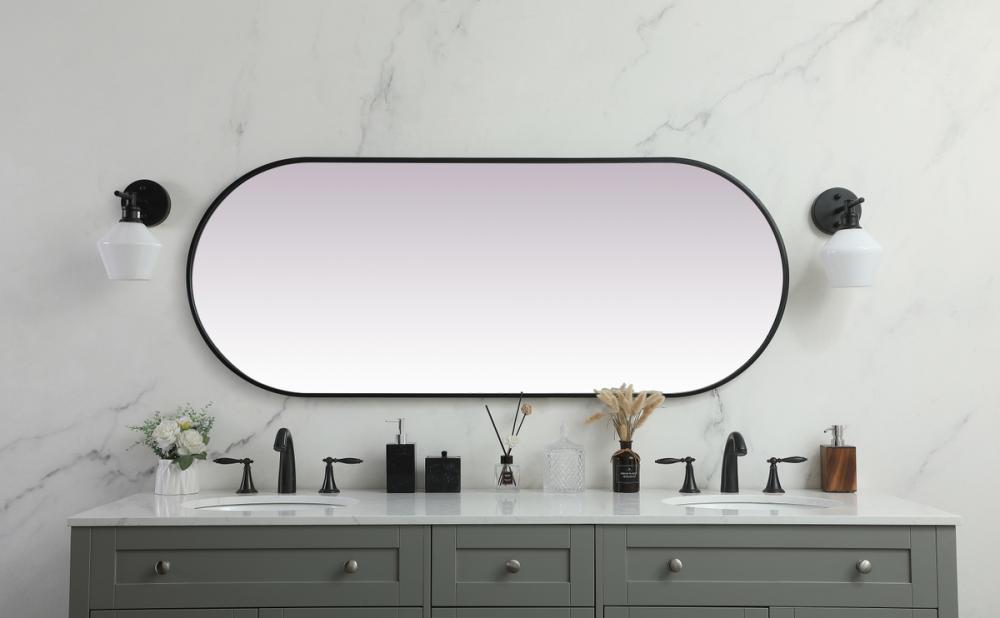 Modern pill-shaped silhouette mirror is an architectural accent in your home.