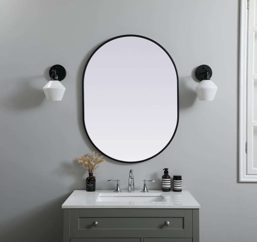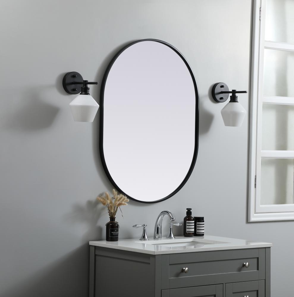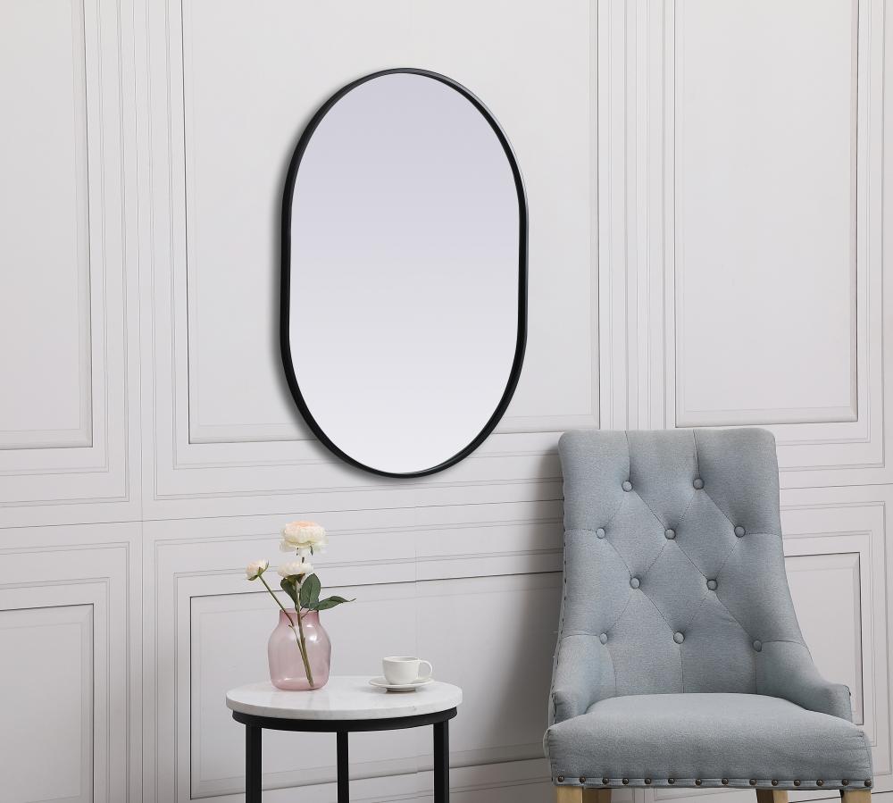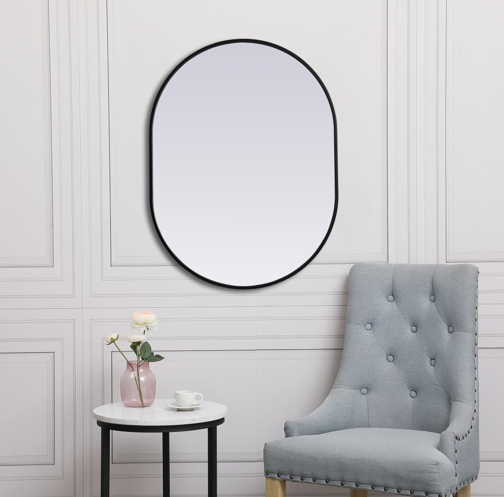 Metal Frame Oval Mirror 27x36 Inch in Black