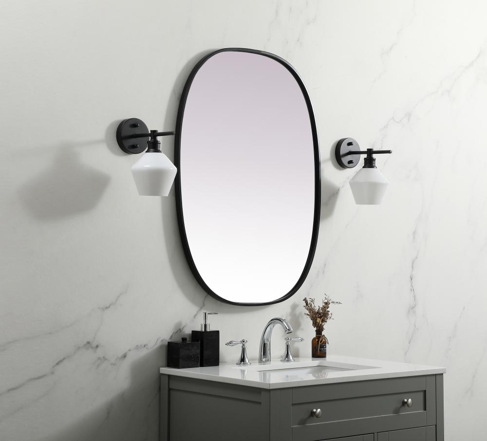 Metal Frame Oval Mirror 27x36 Inch in Black