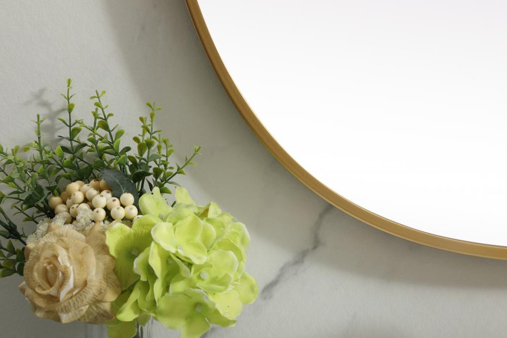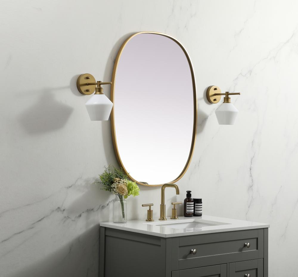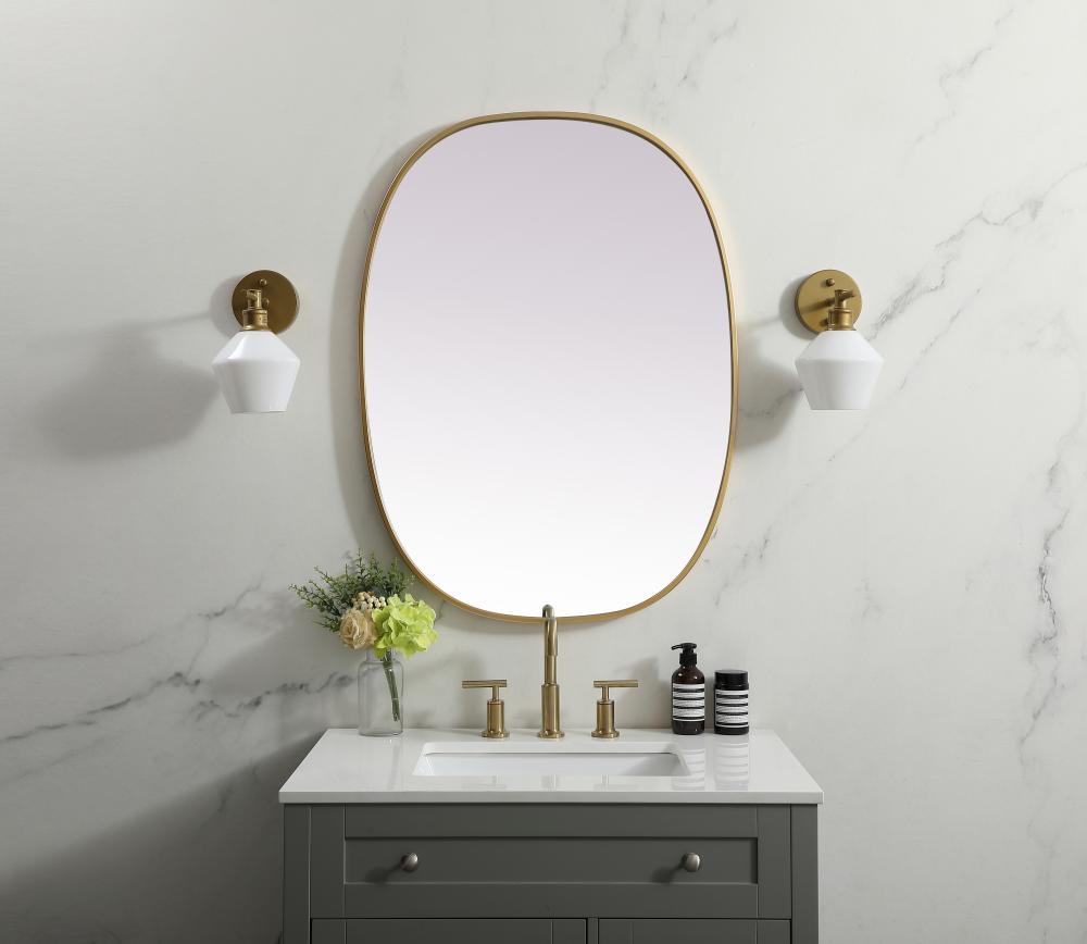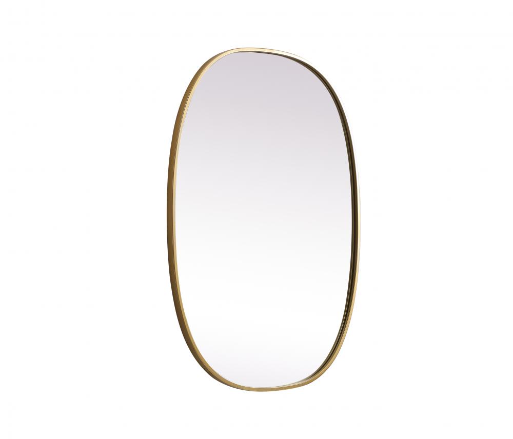 Metal Frame Oval Mirror 27x36 Inch in Brass