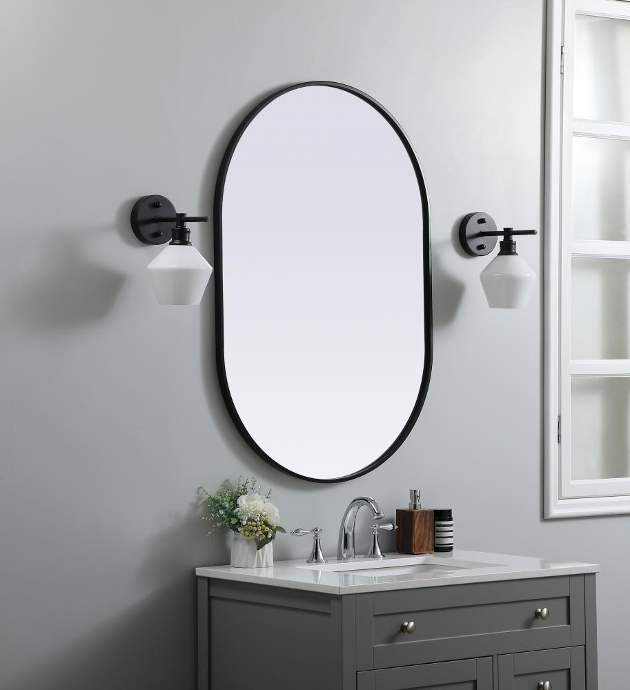 Metal Frame Oval Mirror 27x40 Inch in Black