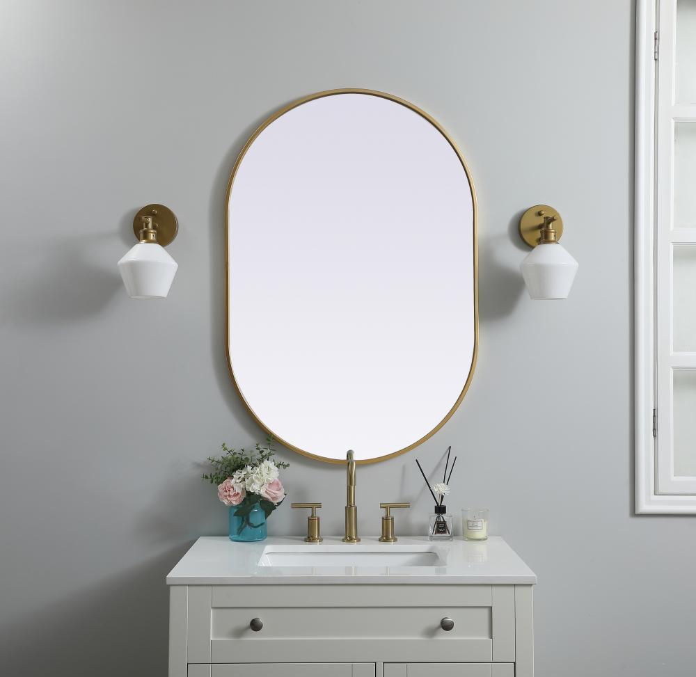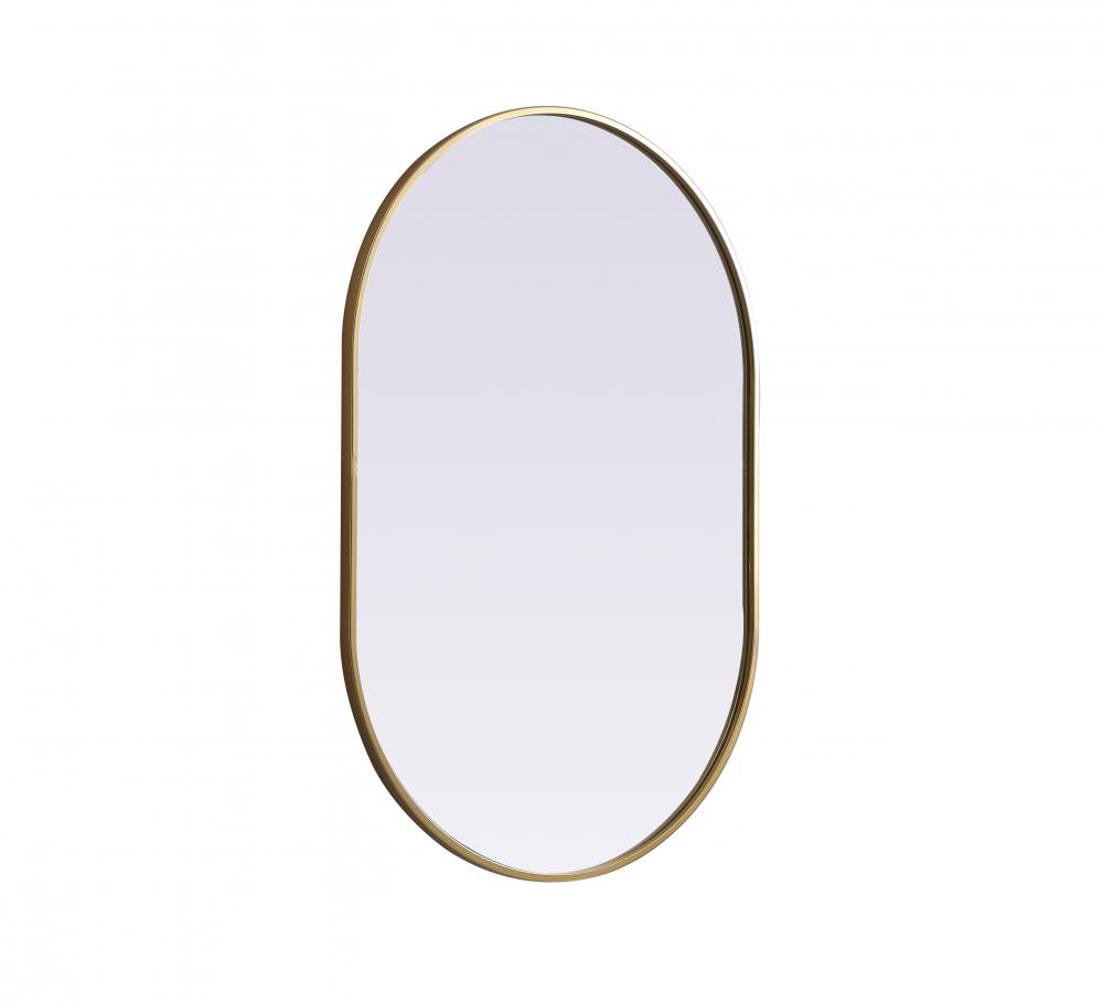 Metal Frame Oval Mirror 27x40 Inch in Brass