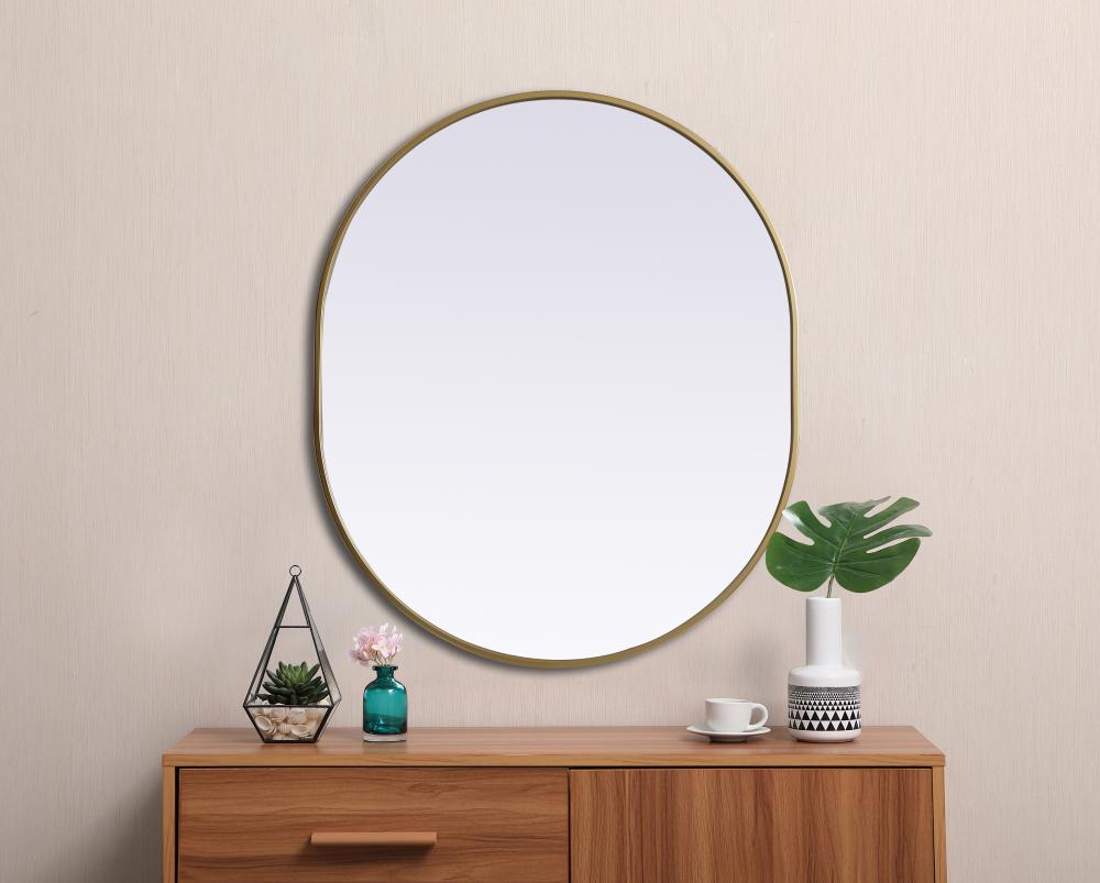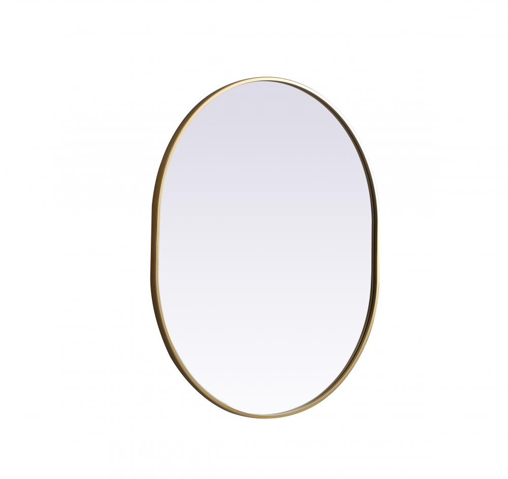Metal Frame Oval Mirror 30x36 Inch in Brass