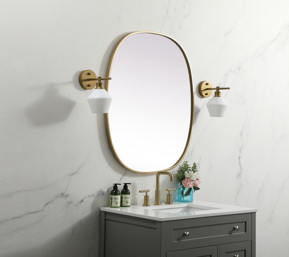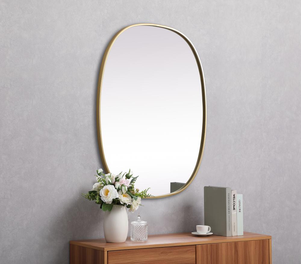 Metal Frame Oval Mirror 30x36 Inch in Brass