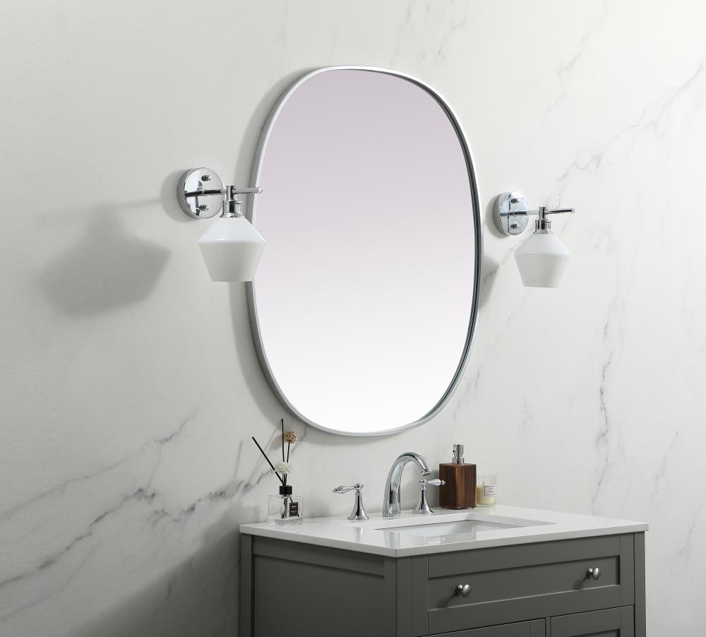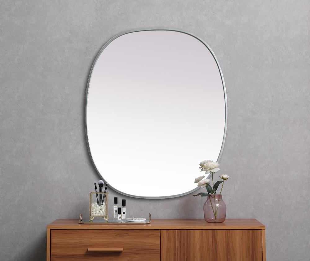 Crafted of metal, this mirror strikes a rounded corner silhouette. Instantly open up any space in your home with this minimalist wall-mounted mirror. Its slender, clean-lined frame sports a classic finish, while the glass mirror within features a flat, for a brilliant reflection, letting the light bounce off to expand your space. Designed in an oblong shape, this metal-frame mirror showcases in the three available satin finishes in black, brass, or silver. Mount this work of art in any room of your choice for added visual impact.