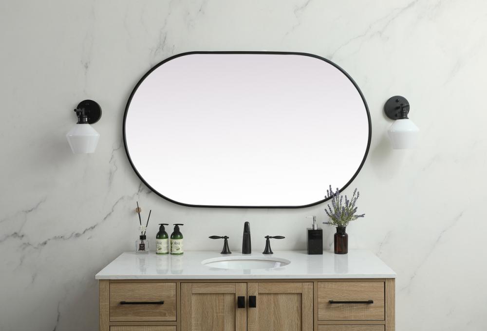 Modern pill-shaped silhouette mirror is an architectural accent in your home.