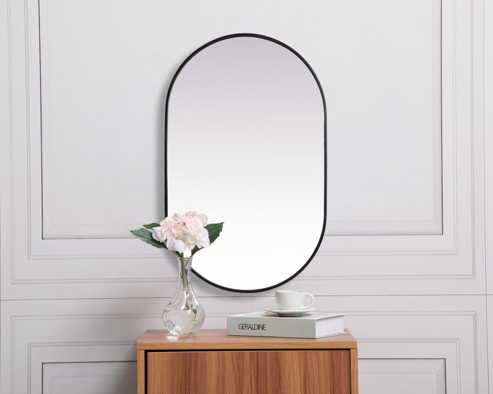 Instantly open up any space in your home with this minimalist wall-mounted mirror. Crafted of metal, this mirror strikes a pill-shaped silhouette. Its slender, clean-lined frame sports a classic finish, while the glass mirror within features a flat, for a brilliant reflection, letting the light bounce off to expand your space. Designed in a pill shape, this metal-frame mirror showcases in the three available satin finishes in black, brass, or silver. Mount this work of art in any room of your choice for added visual impact.