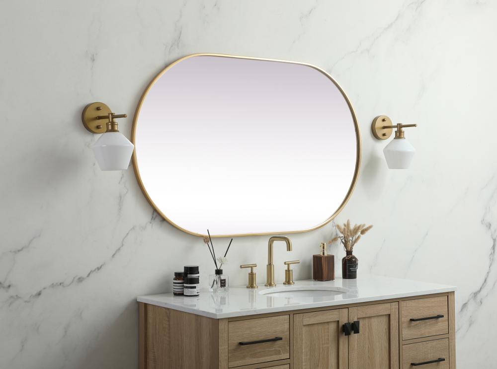 Metal Frame Oval Mirror 30x48 Inch in Brass
