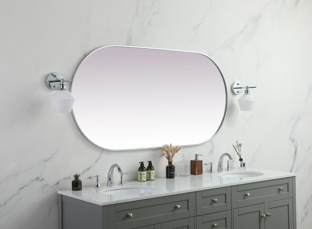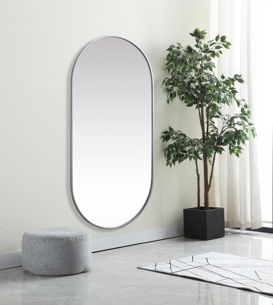 Modern pill-shaped silhouette mirror is an architectural accent in your home.