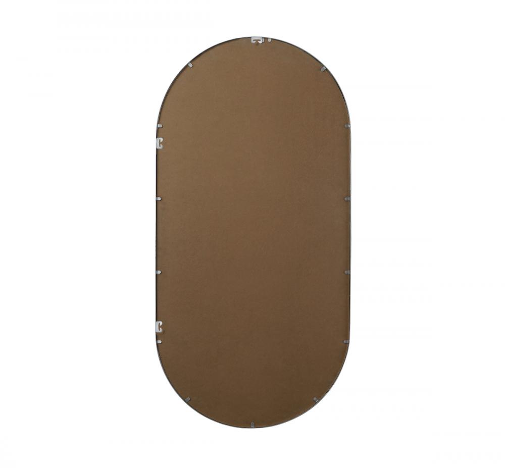 Instantly open up any space in your home with this minimalist wall-mounted mirror. Crafted of metal, this mirror strikes a pill-shaped silhouette. Its slender, clean-lined frame sports a classic finish, while the glass mirror within features a flat, for a brilliant reflection, letting the light bounce off to expand your space. Designed in a pill shape, this metal-frame mirror showcases in the three available satin finishes in black, brass, or silver. Mount this work of art in any room of your choice for added visual impact.