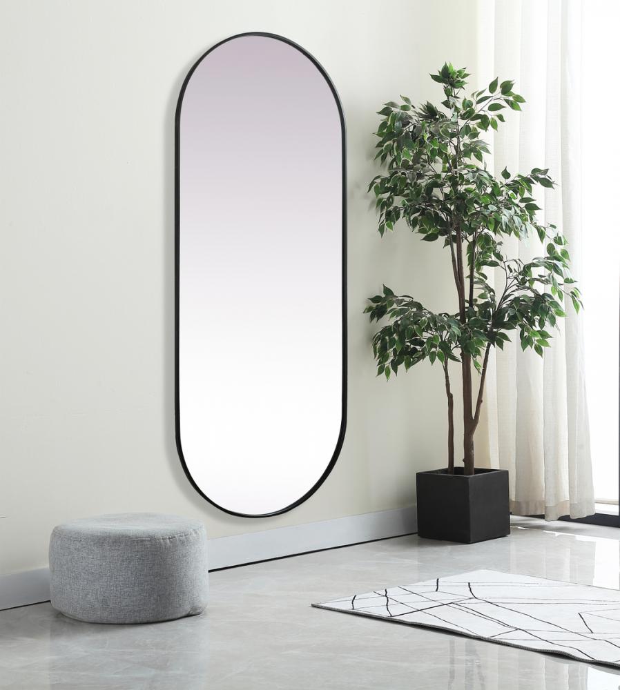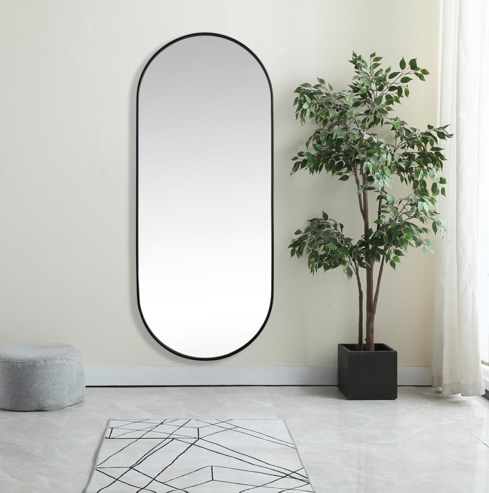 Metal Frame Oval Mirror 30x72 Inch in Black