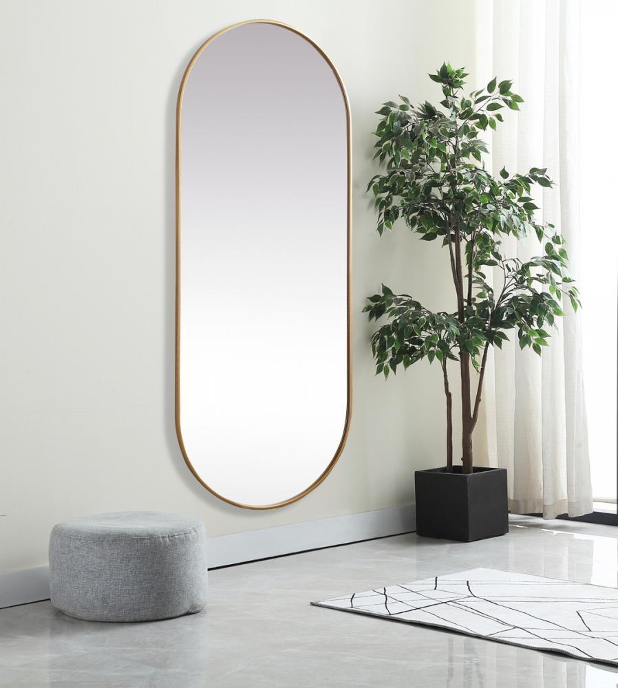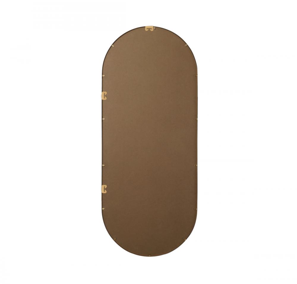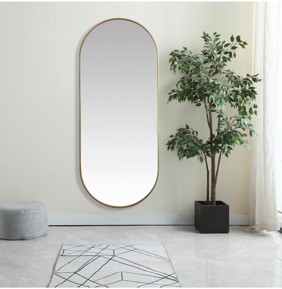 Instantly open up any space in your home with this minimalist wall-mounted mirror. Crafted of metal, this mirror strikes a pill-shaped silhouette. Its slender, clean-lined frame sports a classic finish, while the glass mirror within features a flat, for a brilliant reflection, letting the light bounce off to expand your space. Designed in a pill shape, this metal-frame mirror showcases in the three available satin finishes in black, brass, or silver. Mount this work of art in any room of your choice for added visual impact.