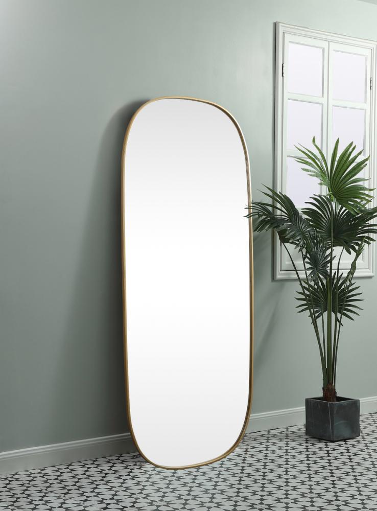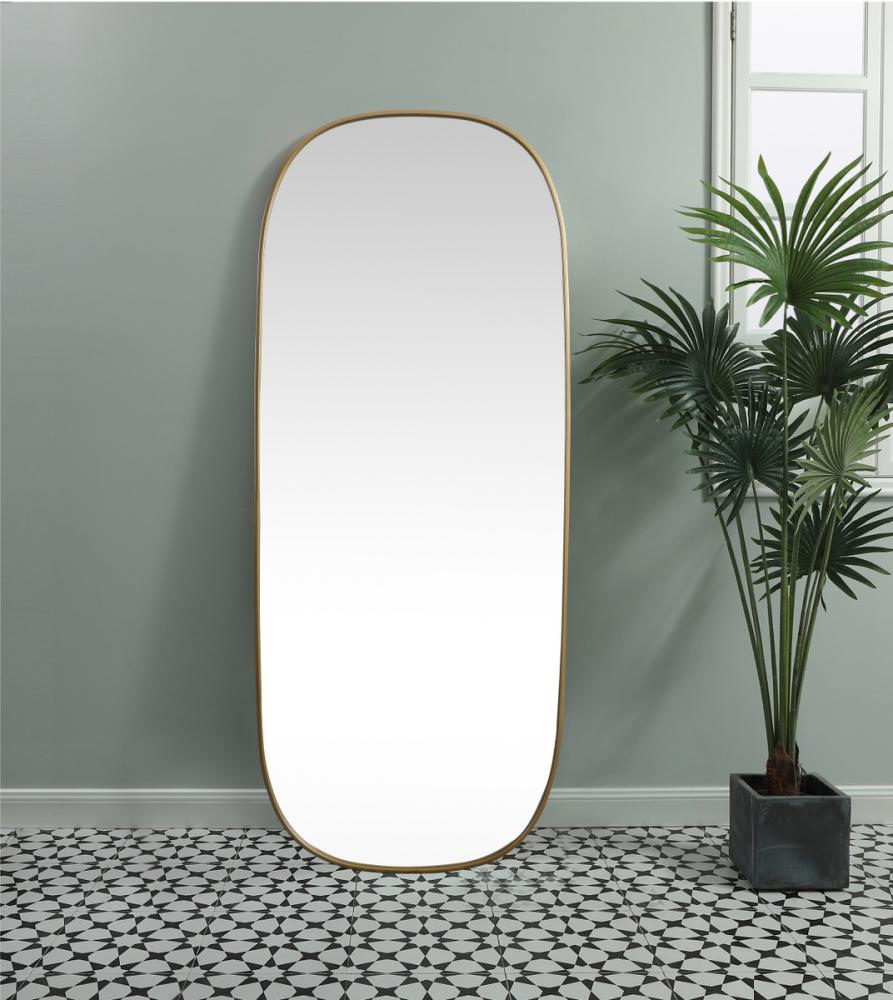 Metal Frame Oval Mirror 30x72 Inch in Brass
