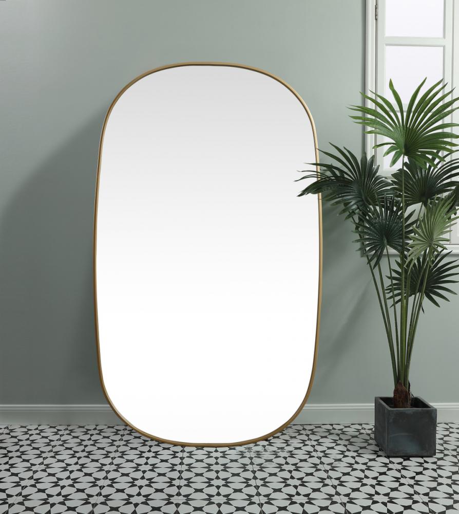 Metal Frame Oval Mirror 36x60 Inch in Brass