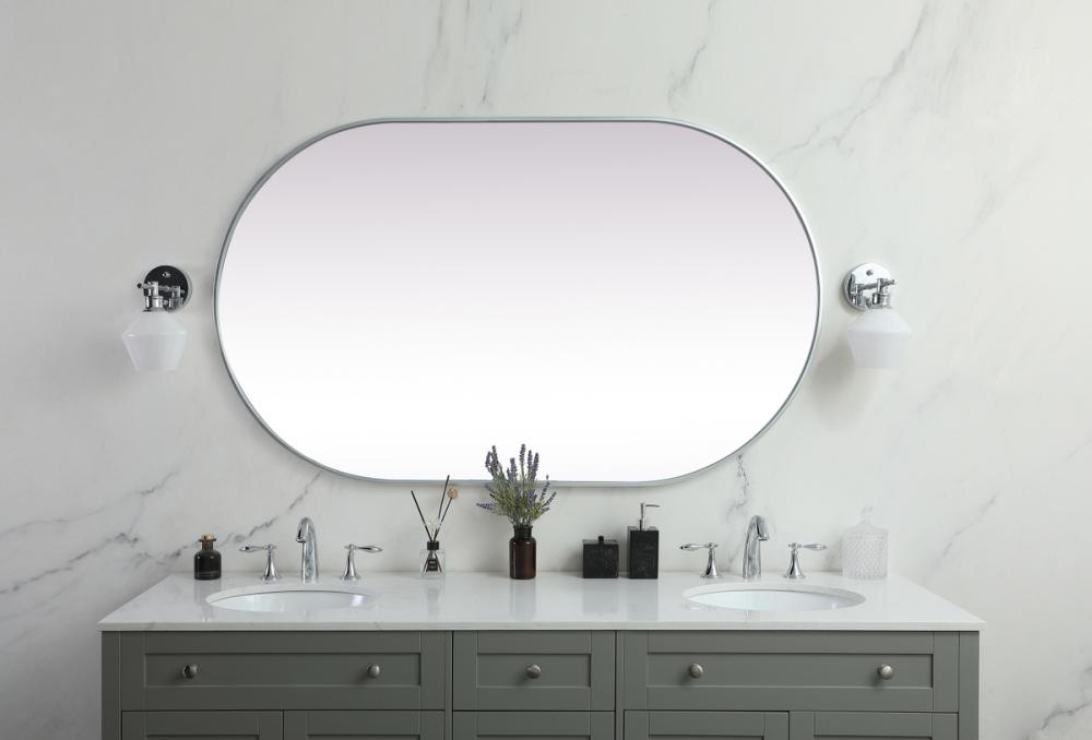 Metal Frame Oval Mirror 36x60 Inch in Silver