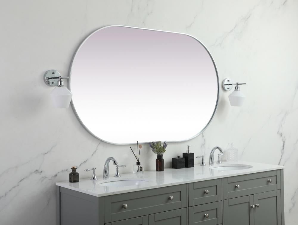 Modern pill-shaped silhouette mirror is an architectural accent in your home.