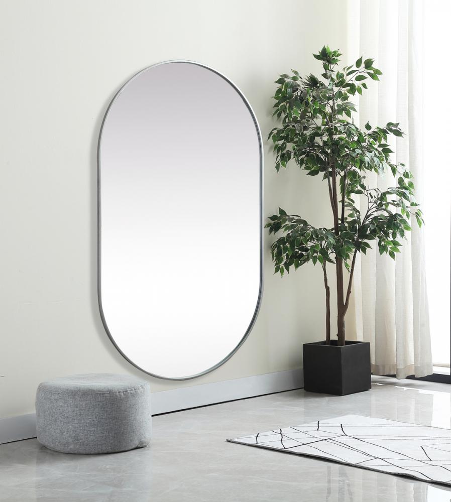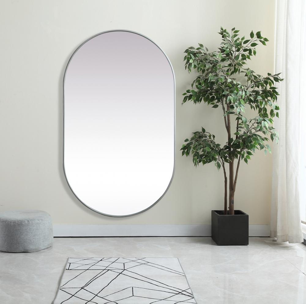 Instantly open up any space in your home with this minimalist wall-mounted mirror. Crafted of metal, this mirror strikes a pill-shaped silhouette. Its slender, clean-lined frame sports a classic finish, while the glass mirror within features a flat, for a brilliant reflection, letting the light bounce off to expand your space. Designed in a pill shape, this metal-frame mirror showcases in the three available satin finishes in black, brass, or silver. Mount this work of art in any room of your choice for added visual impact.