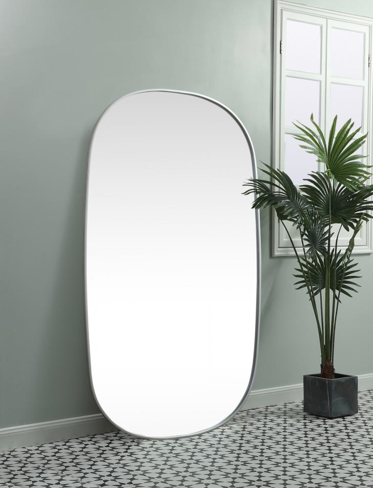 Metal Frame Oval Mirror 36x60 Inch in Silver