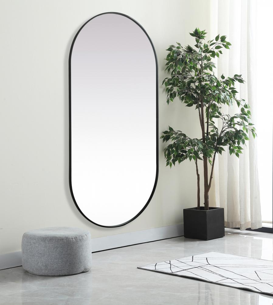 Metal Frame Oval Mirror 36x72 Inch in Black