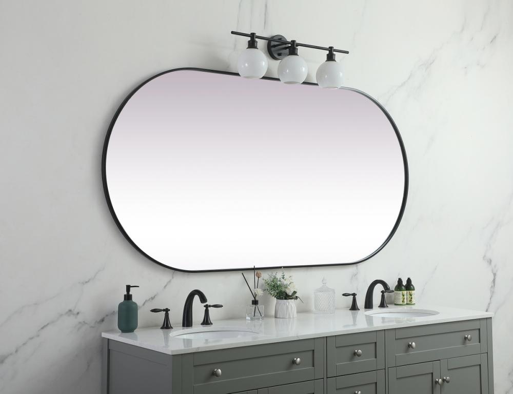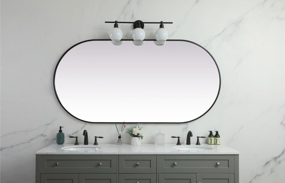 Modern pill-shaped silhouette mirror is an architectural accent in your home.