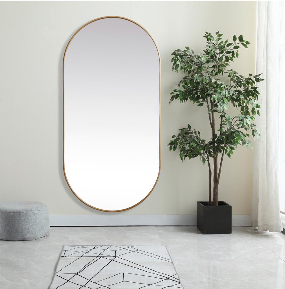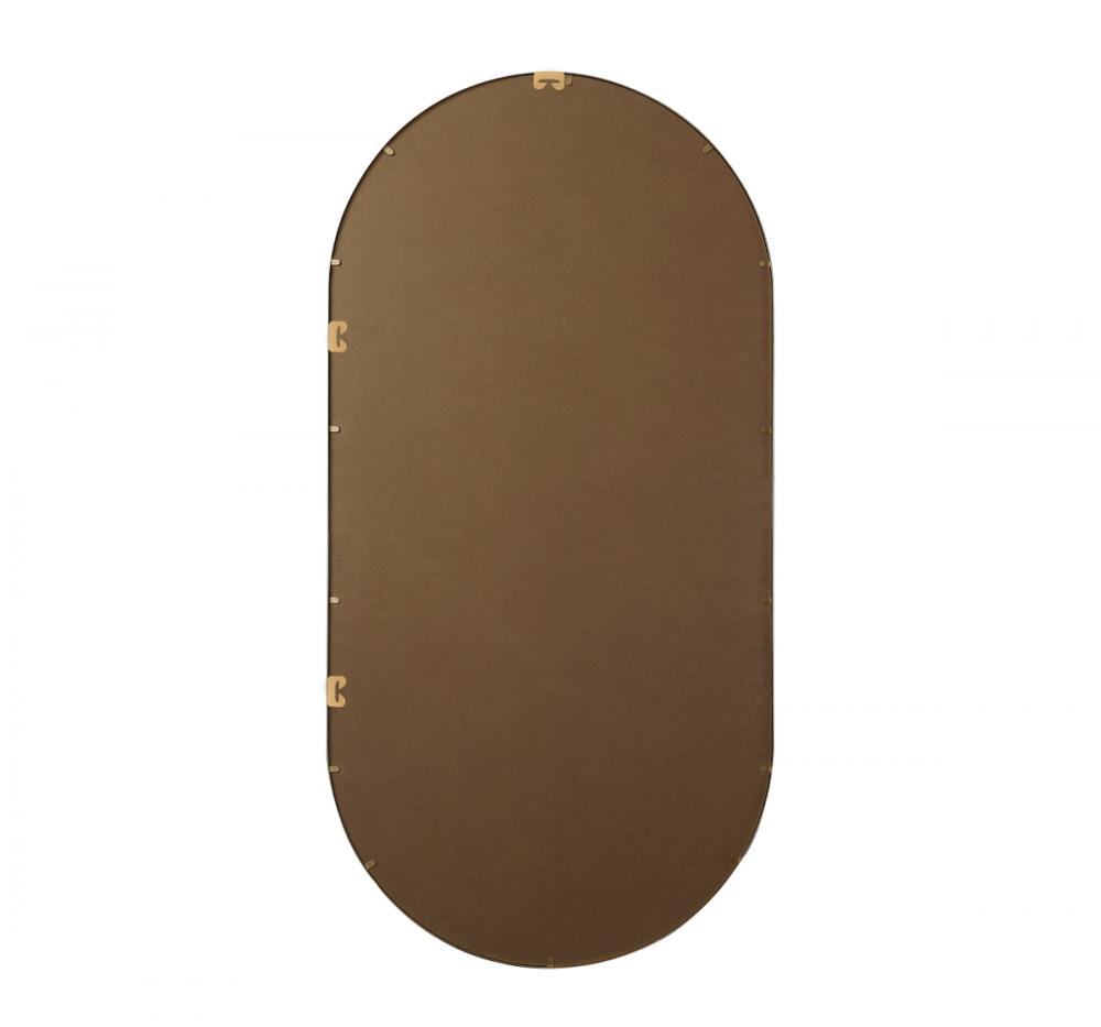 Instantly open up any space in your home with this minimalist wall-mounted mirror. Crafted of metal, this mirror strikes a pill-shaped silhouette. Its slender, clean-lined frame sports a classic finish, while the glass mirror within features a flat, for a brilliant reflection, letting the light bounce off to expand your space. Designed in a pill shape, this metal-frame mirror showcases in the three available satin finishes in black, brass, or silver. Mount this work of art in any room of your choice for added visual impact.
