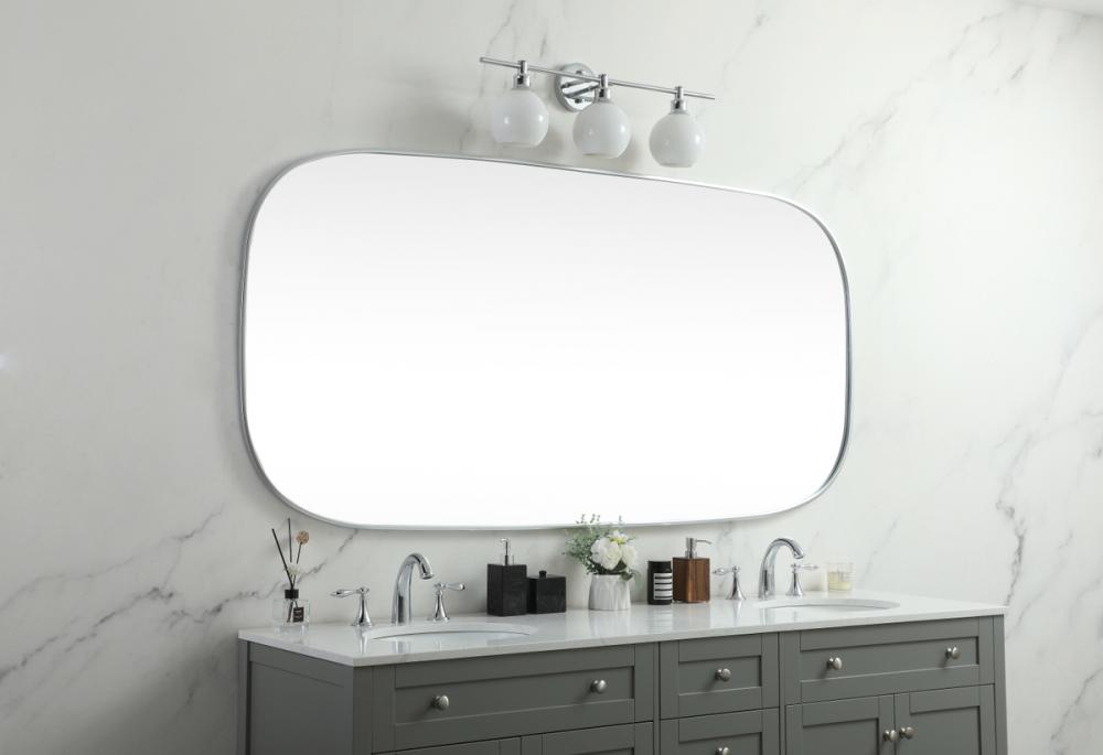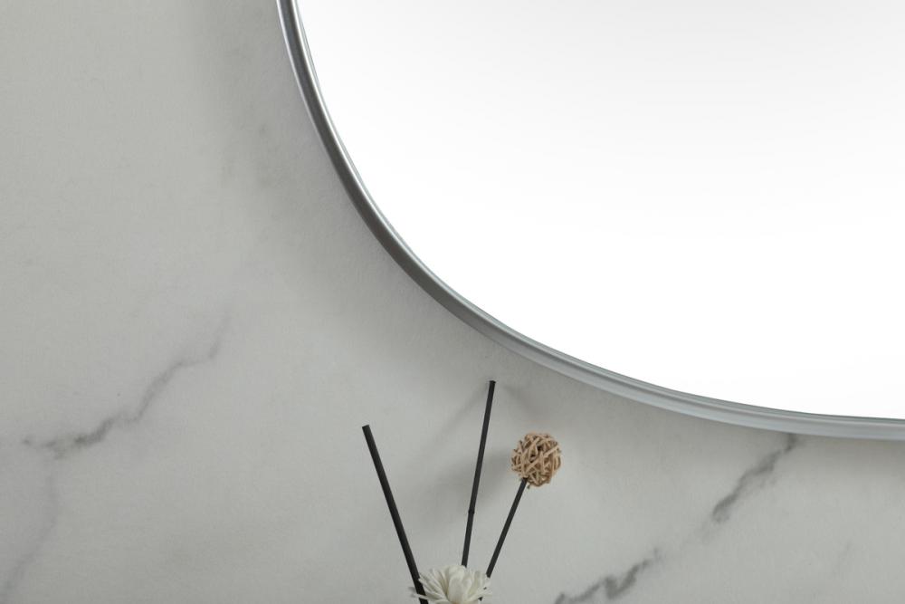 Crafted of metal, this mirror strikes a rounded corner silhouette. Instantly open up any space in your home with this minimalist wall-mounted mirror. Its slender, clean-lined frame sports a classic finish, while the glass mirror within features a flat, for a brilliant reflection, letting the light bounce off to expand your space. Designed in an oblong shape, this metal-frame mirror showcases in the three available satin finishes in black, brass, or silver. Mount this work of art in any room of your choice for added visual impact.
