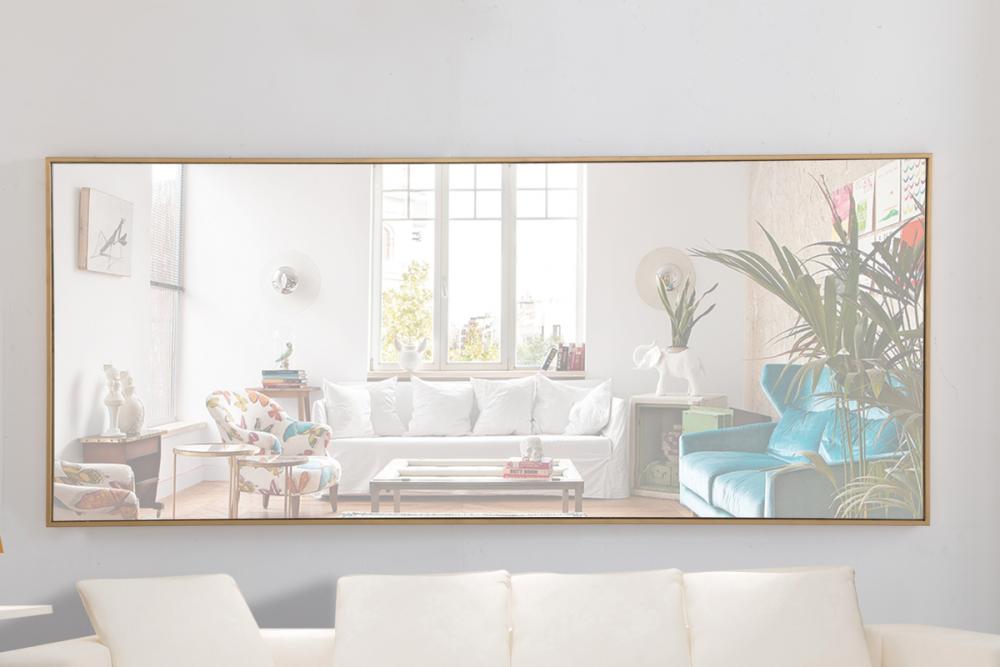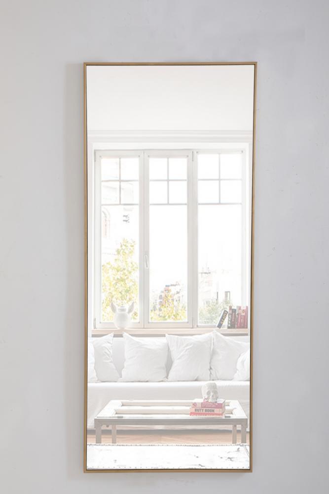 The classic clean and straight lines of this large rectangular mirror provide you with a timeless and elegant look to accent any room, hallway or over a double vanity in your home or office, featuring an ultra-thin brass metal frame in deep profile, refecting a minimalist's design and industrial styling. To ensure your home safety, we uses metal hanger bar that are securely welded to the back of the metal frame. We recommend using suitable heavy duty picture/mirror hooks, selecting the best type of fixing for the particular wall you wish to hang the mirror on. Measurement: 30x72, hang vertical or horizontal.