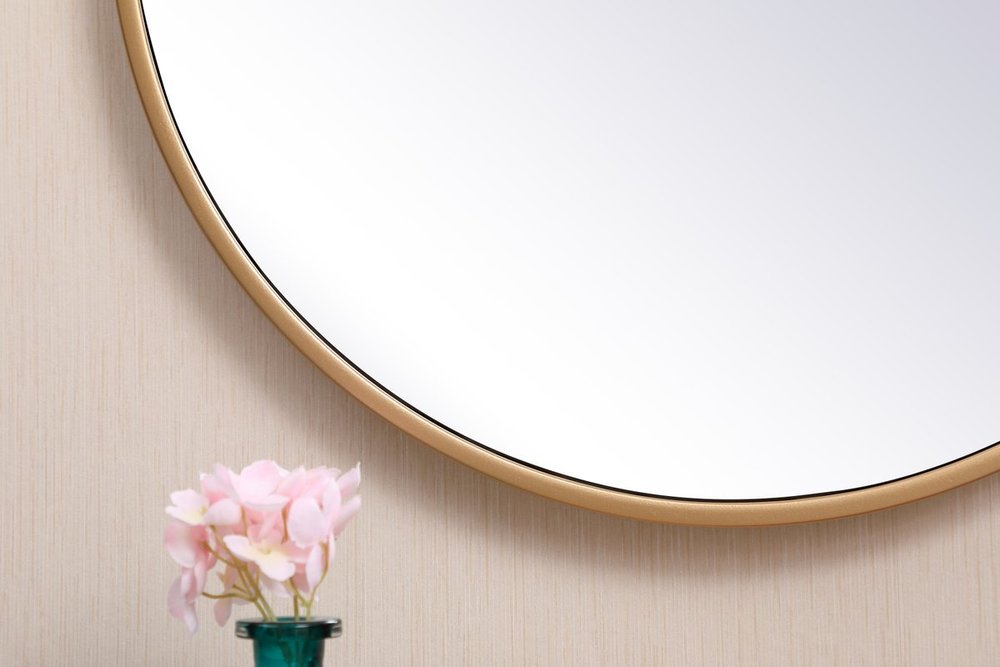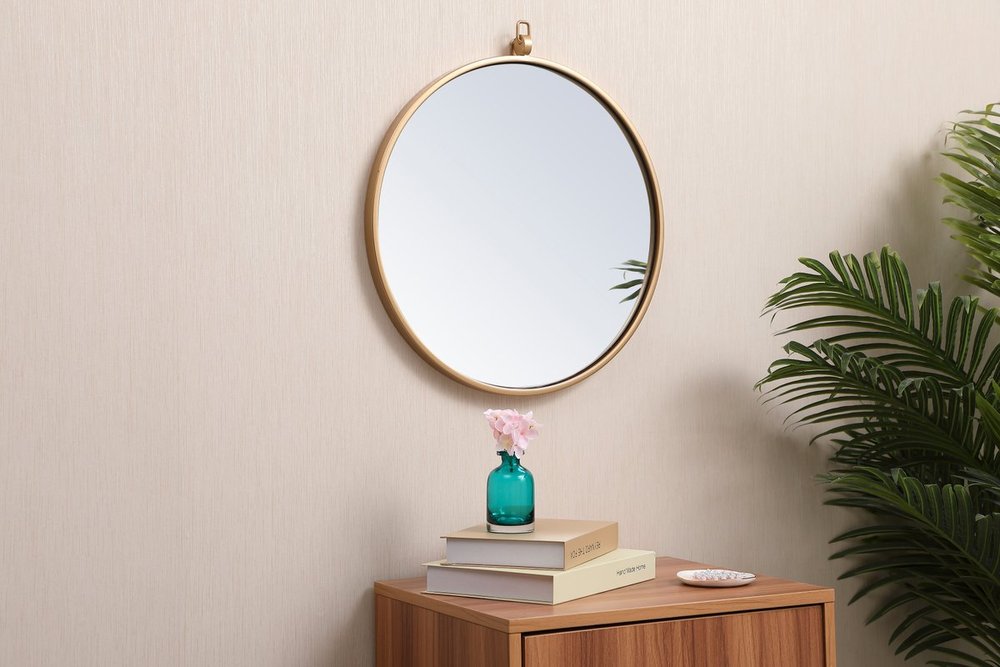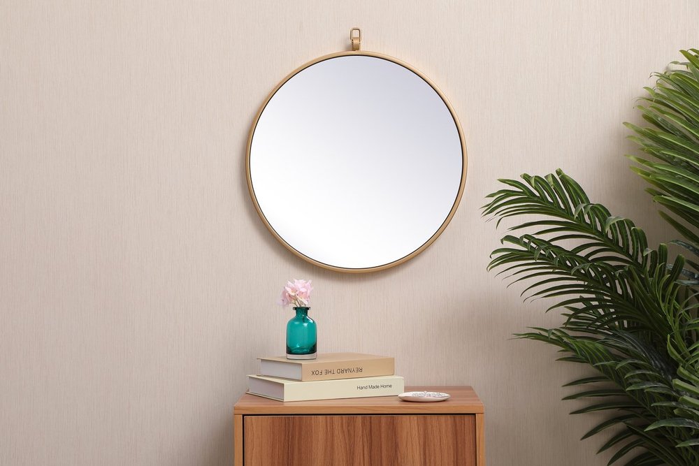 Metal frame round mirror with decorative hook 18 inch in Brass
