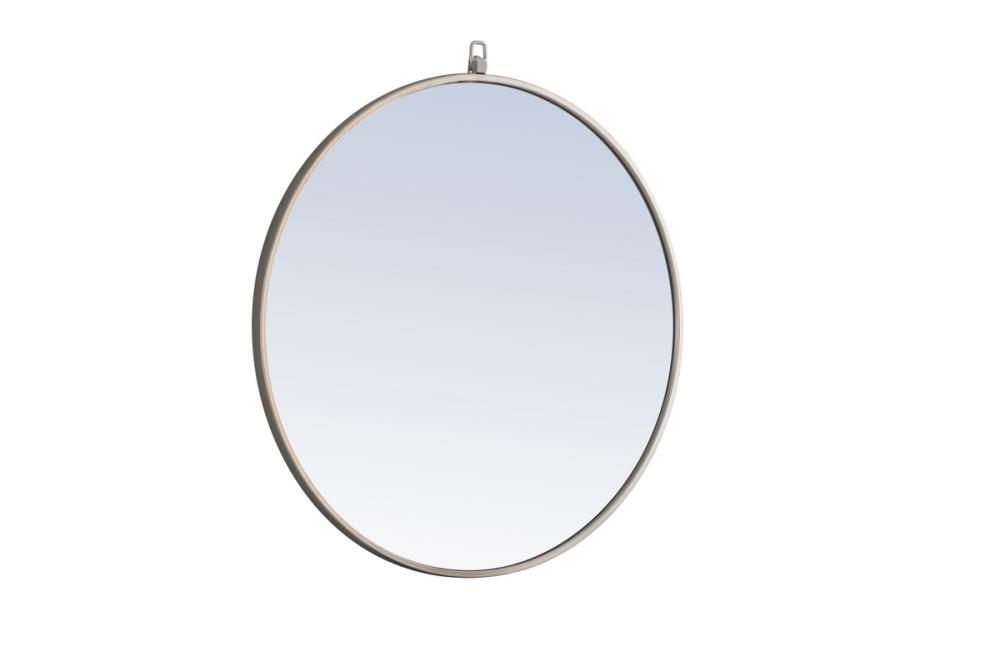 Enhance the appeal of your home or office with this contemporary mirror in silver finish, slightly antiqued, featuring a thin rounded metal edges in a deep profile, reflecting a minimalist's design and trendy styling. To ensure your home safety, we use a metal hanger ring that are securely welded to the back of the metal frame , which sit on top of the frame for easy hanging. We recommend using suitable heavy duty picture/mirror hooks, selecting the best type of fixing for the particular wall you wish to hang the mirror on, using the appropriate rawl plug if required. Measurement: D28.