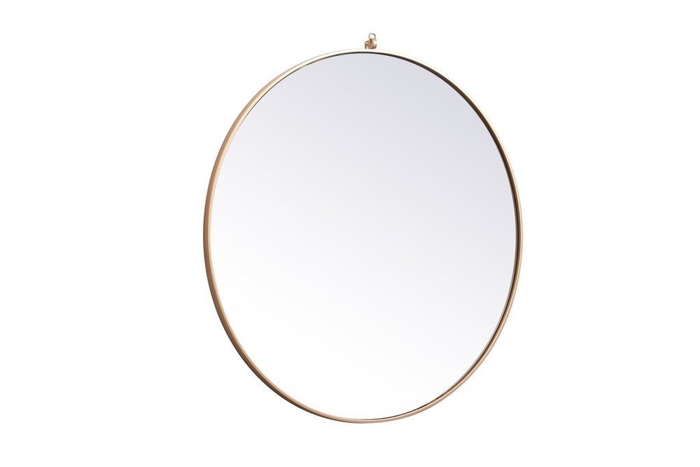 Metal frame round mirror with decorative hook 39 inch in Brass