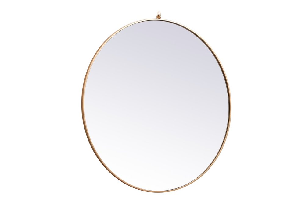 Metal frame round mirror with decorative hook 45 inch in Brass