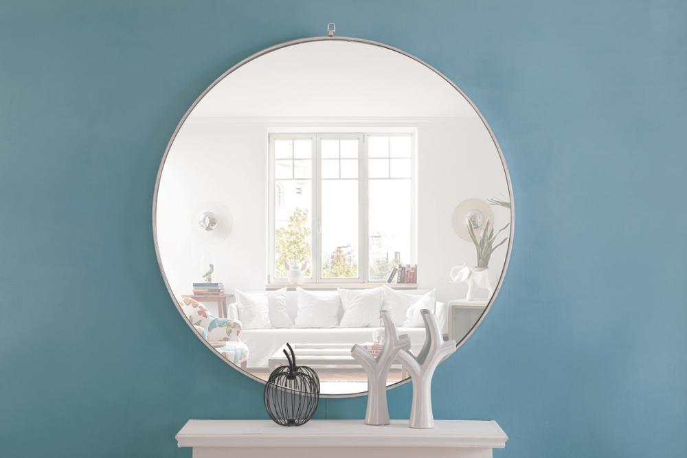 Enhance the appeal of your home or office with this contemporary mirror in silver finish, slightly antiqued, featuring a thin rounded metal edges in a deep profile, reflecting a minimalist's design and trendy styling. To ensure your home safety, we use a metal hanger ring that are securely welded to the back of the metal frame , which sit on top of the frame for easy hanging. We recommend using suitable heavy duty picture/mirror hooks, selecting the best type of fixing for the particular wall you wish to hang the mirror on, using the appropriate rawl plug if required. Measurement: D48.