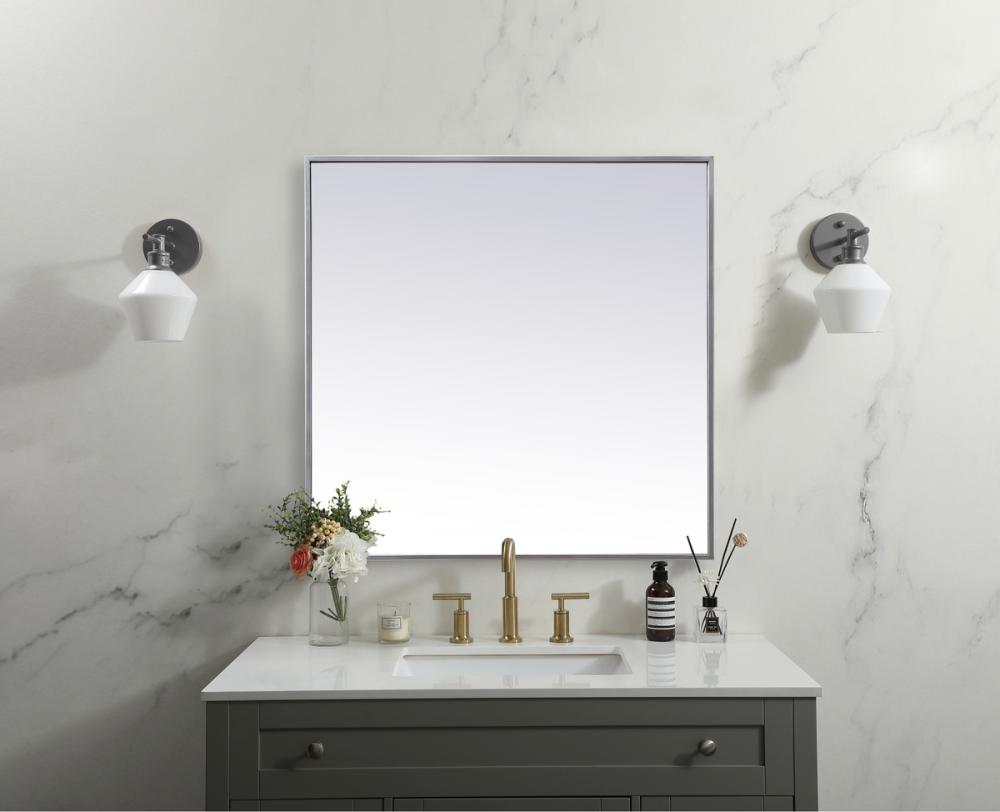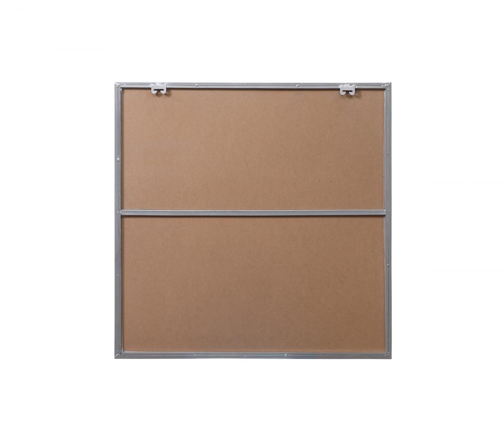 The mirror features a sleek and modern design, making it a stylish addition to any room. The square shape, combined with the iron metal frame, creates a contemporary look.