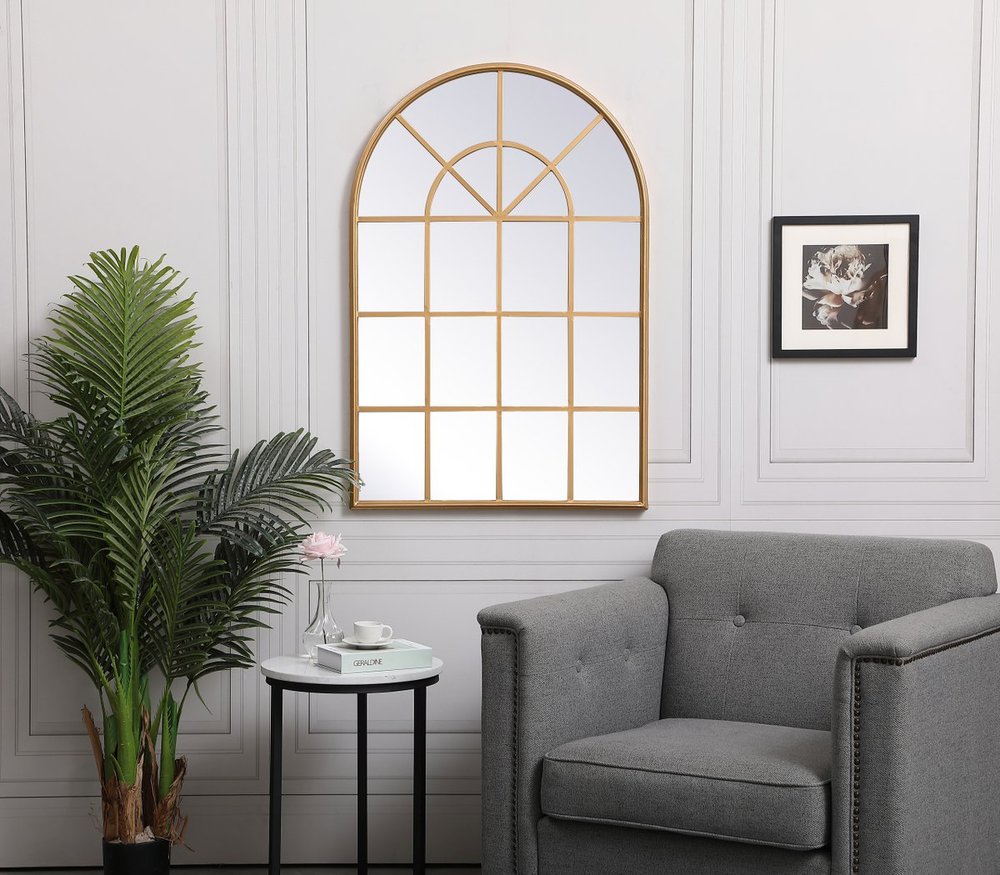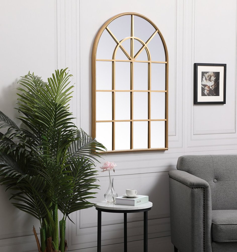 Metal windowpane mirror 28 inch x 41 inch in in Brass