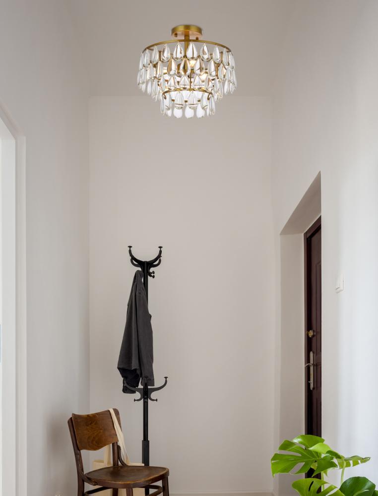 Install this flush mount in any room to give an elegant look. This stunning light features hand painted finish and clear brillant crystals which gives a classy look. Set a cozy atmosphere when you switch on this dazzling fixture and captivate your guests.