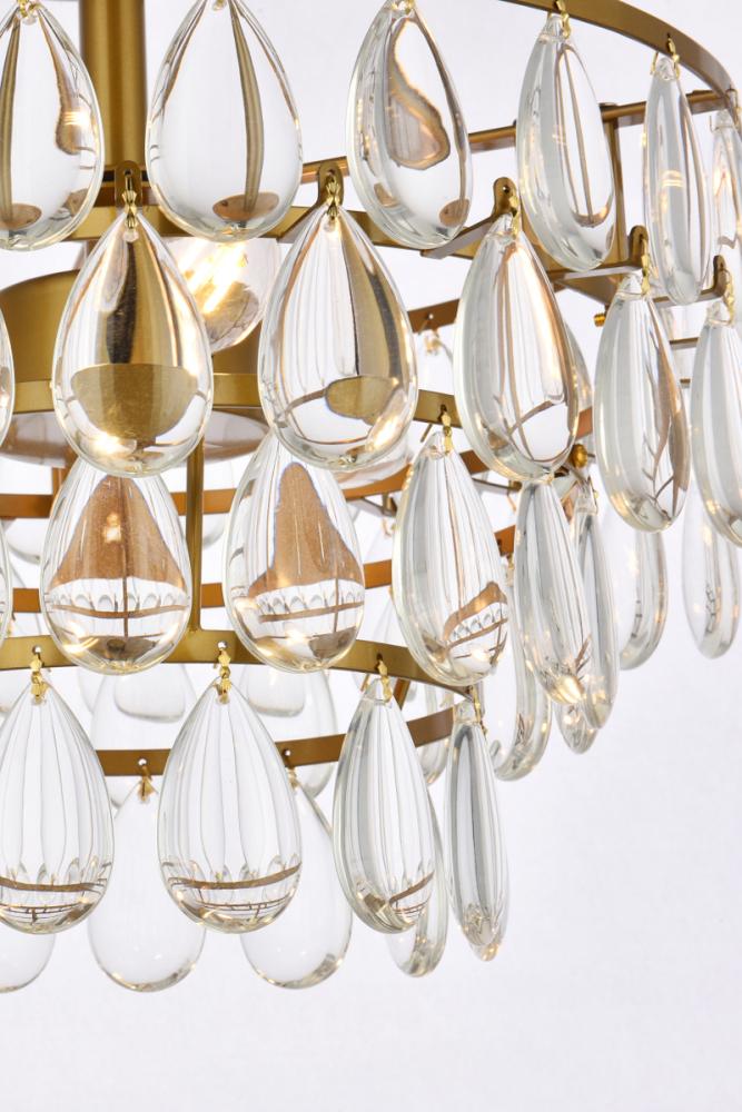 Tiers of clear smooth almond shaped crystals reflect the soft glow of candelabra bulbs