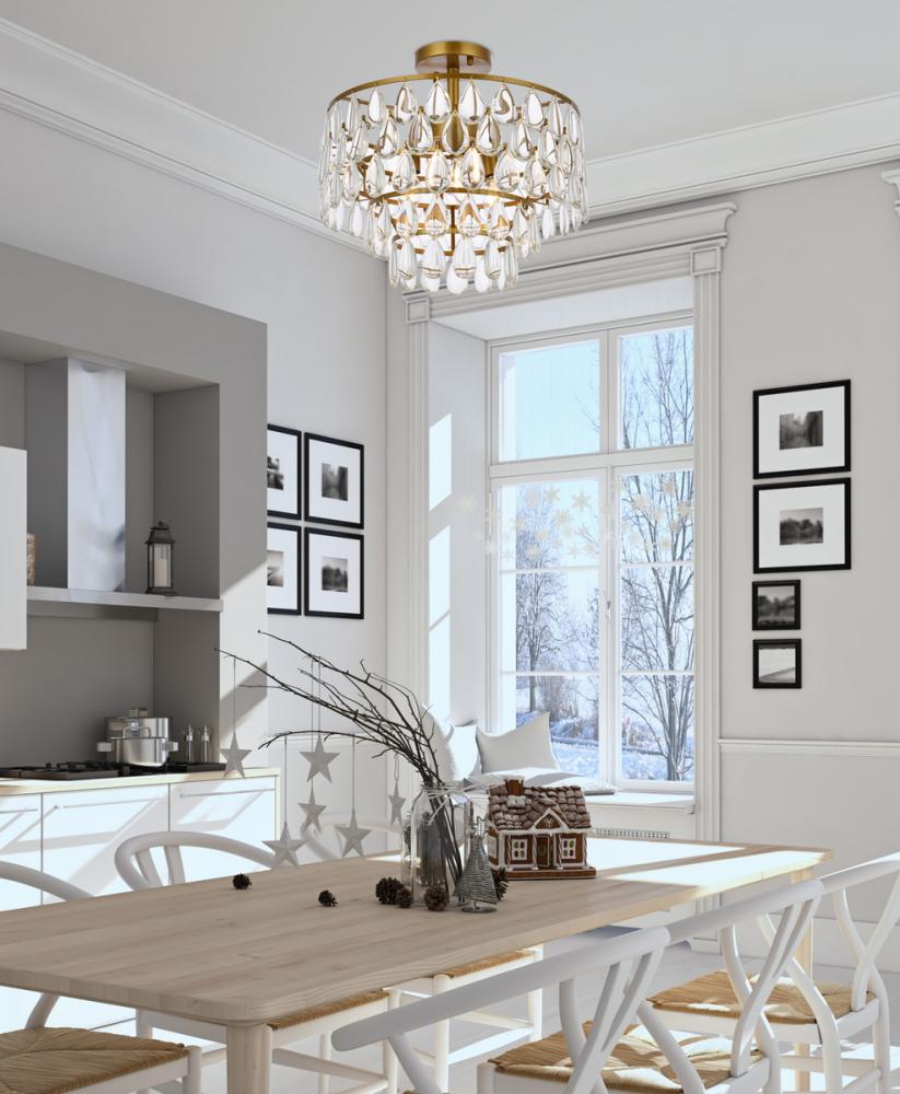 Install this flush mount in any room to give an elegant look. This stunning light features hand painted finish and clear brillant crystals which gives a classy look. Set a cozy atmosphere when you switch on this dazzling fixture and captivate your guests.