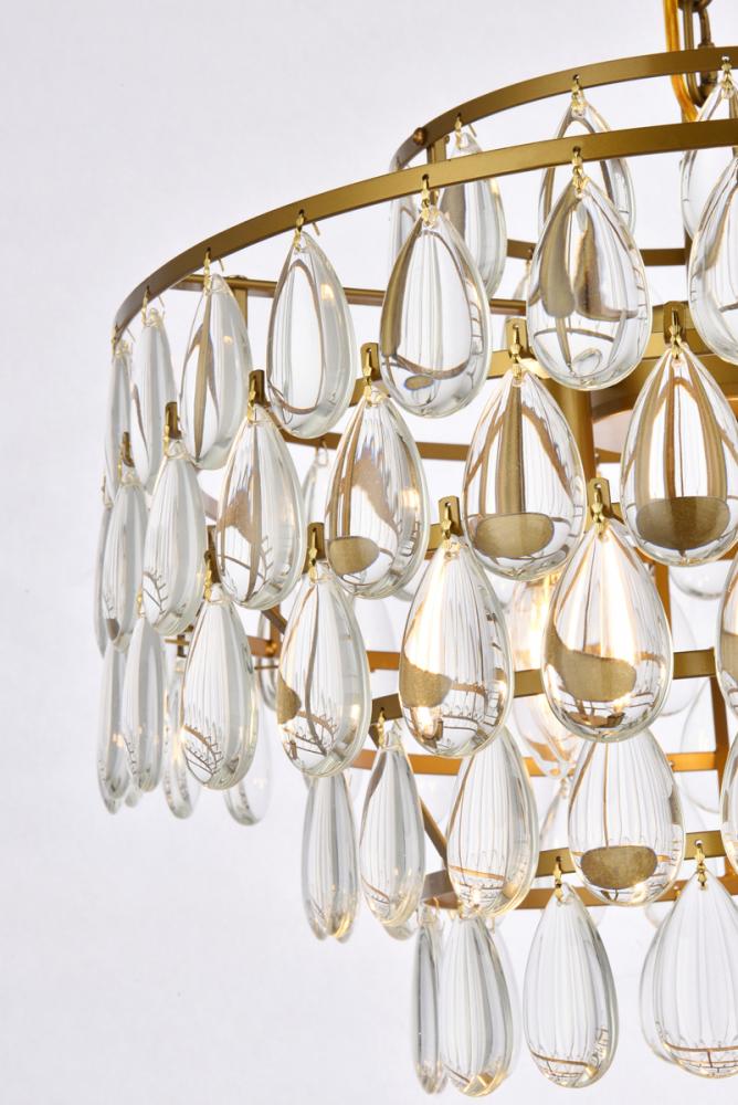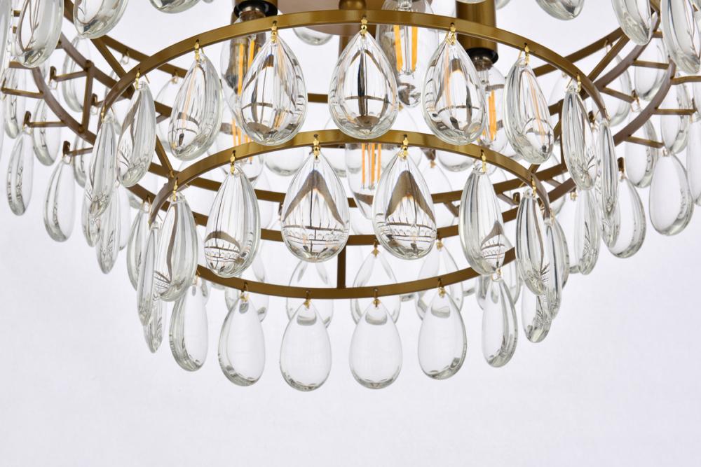 Tiers of clear smooth almond shaped crystals reflect the soft glow of candelabra bulbs