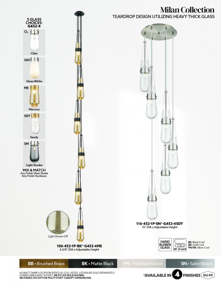 The Milan pendant reinvents the teardrop form with contemporary shapes and modern metal accents. The heavy glass bulb is held in place by a metal band with heavily detailed screws. Suspended from a tapered frame and featuring a single filament bulb, the M