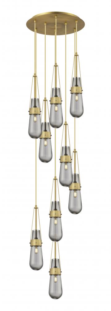 Milan - 9 Light - 19 inch - Brushed Brass - Light Smoke Shade - Multi Pendant